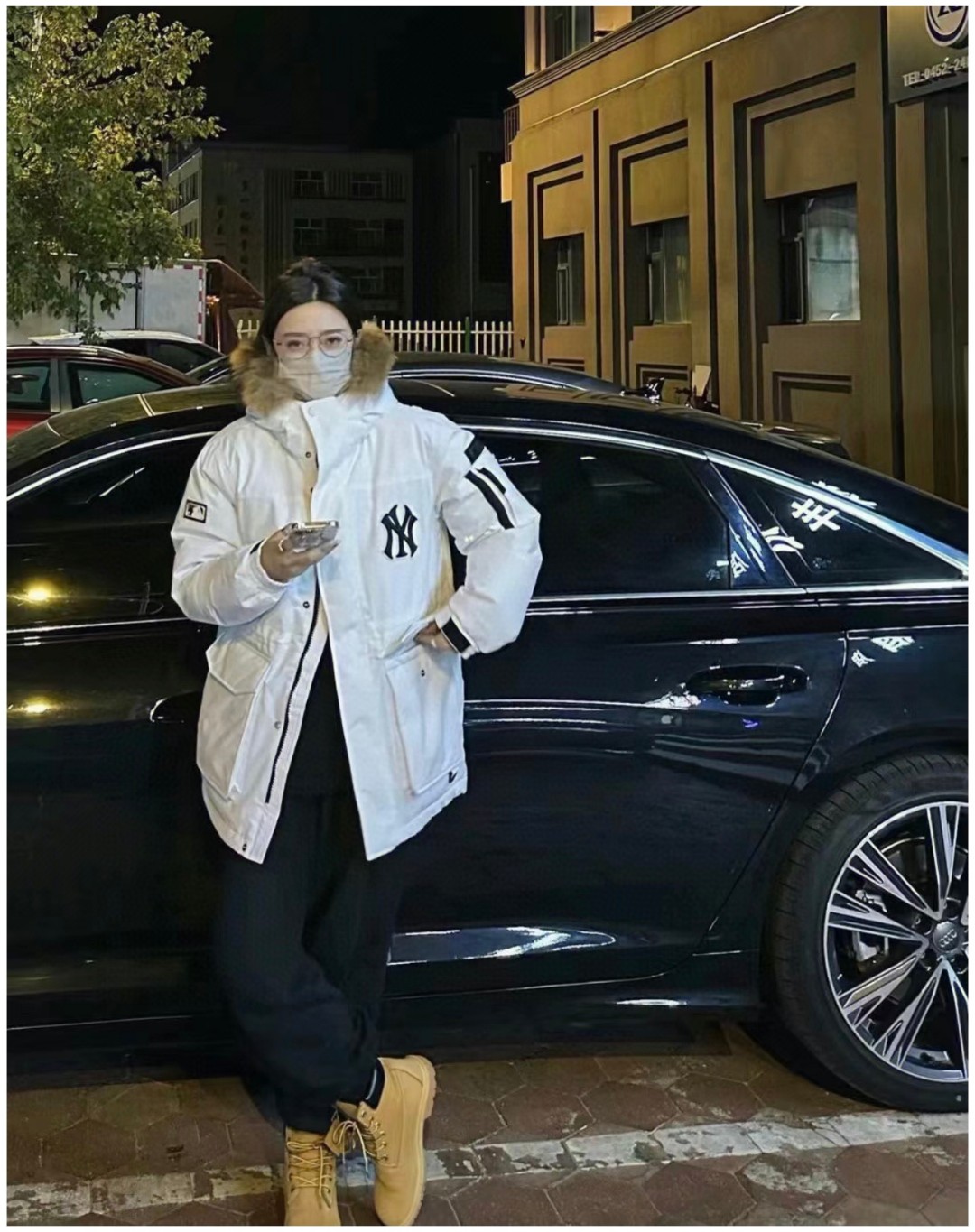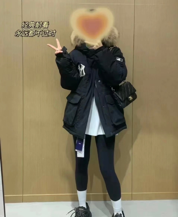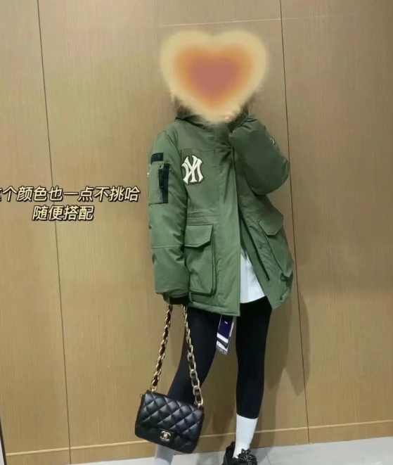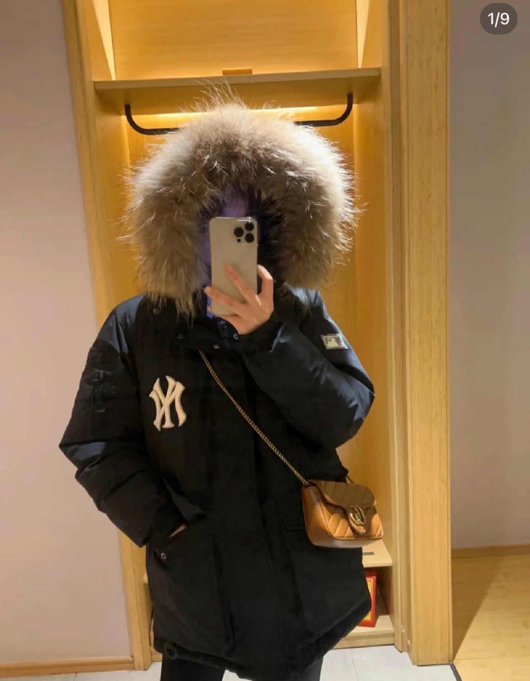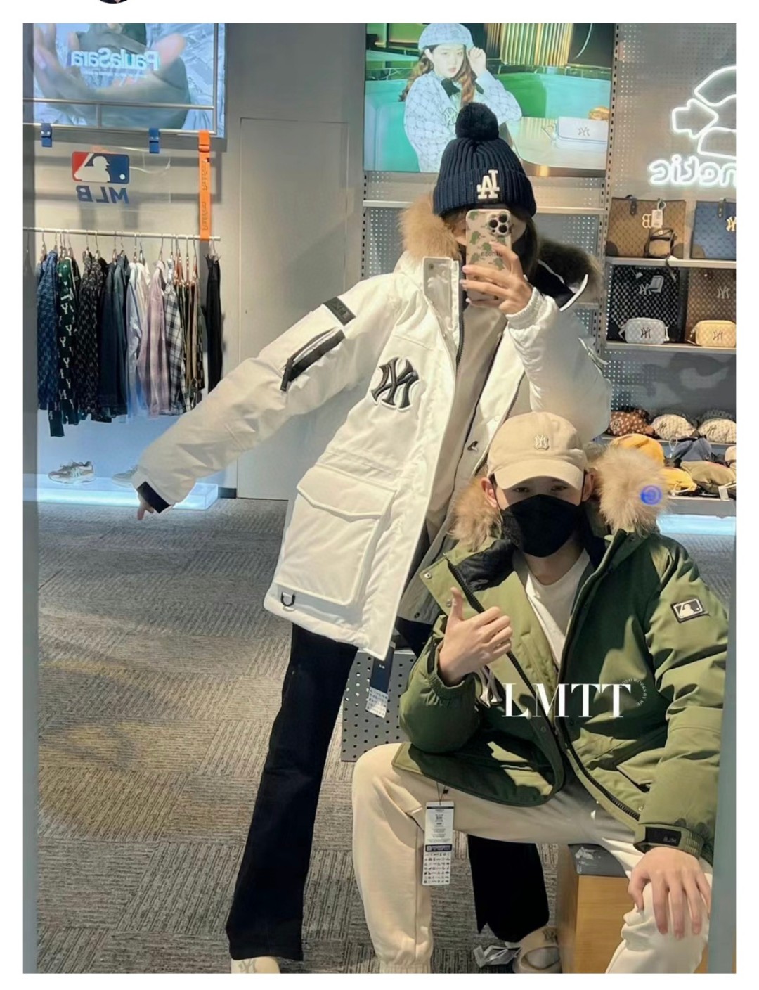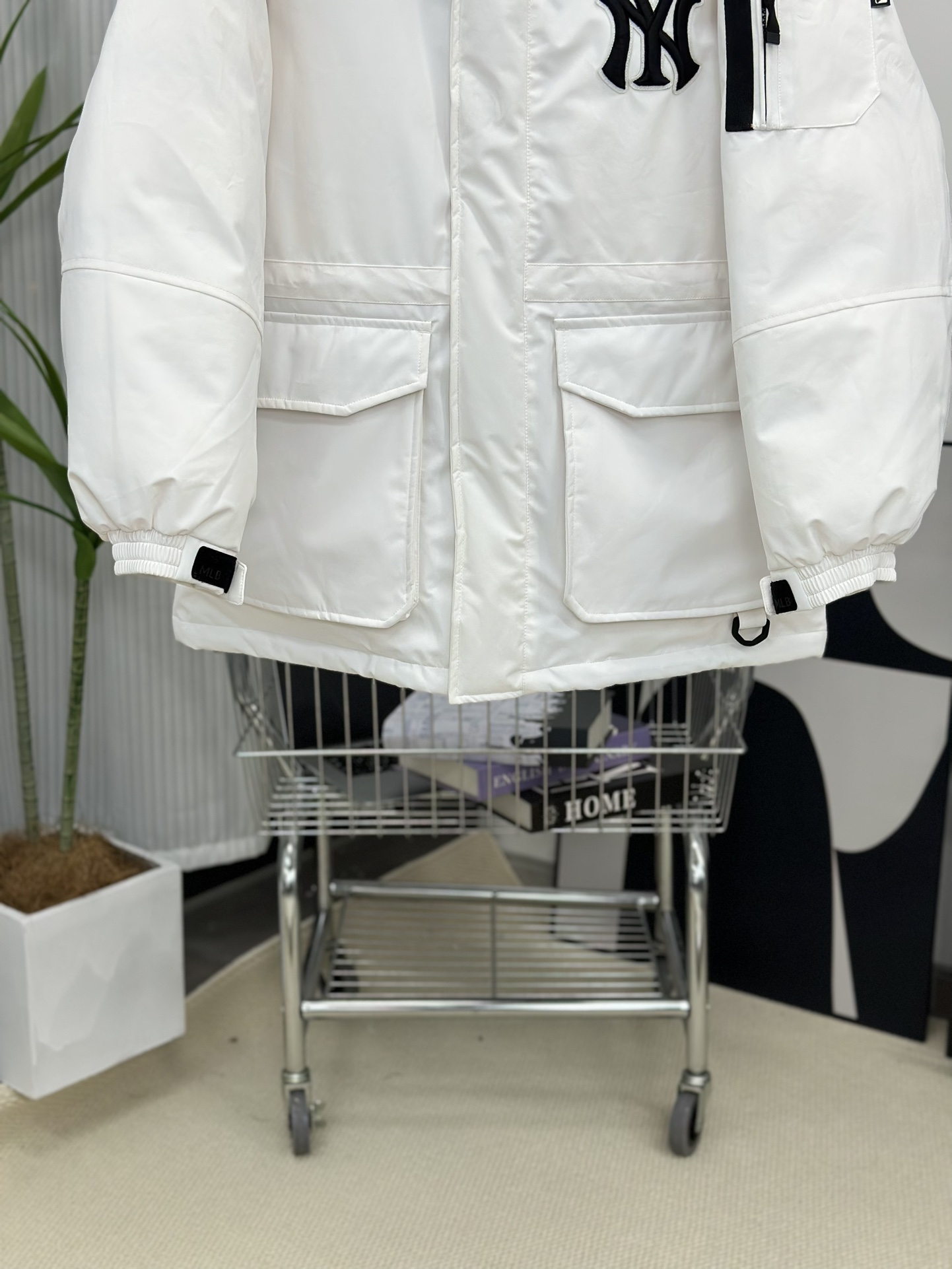 代购级版本!!MLB 23SS 大标字母连帽工装大毛领情侣款羽绒服