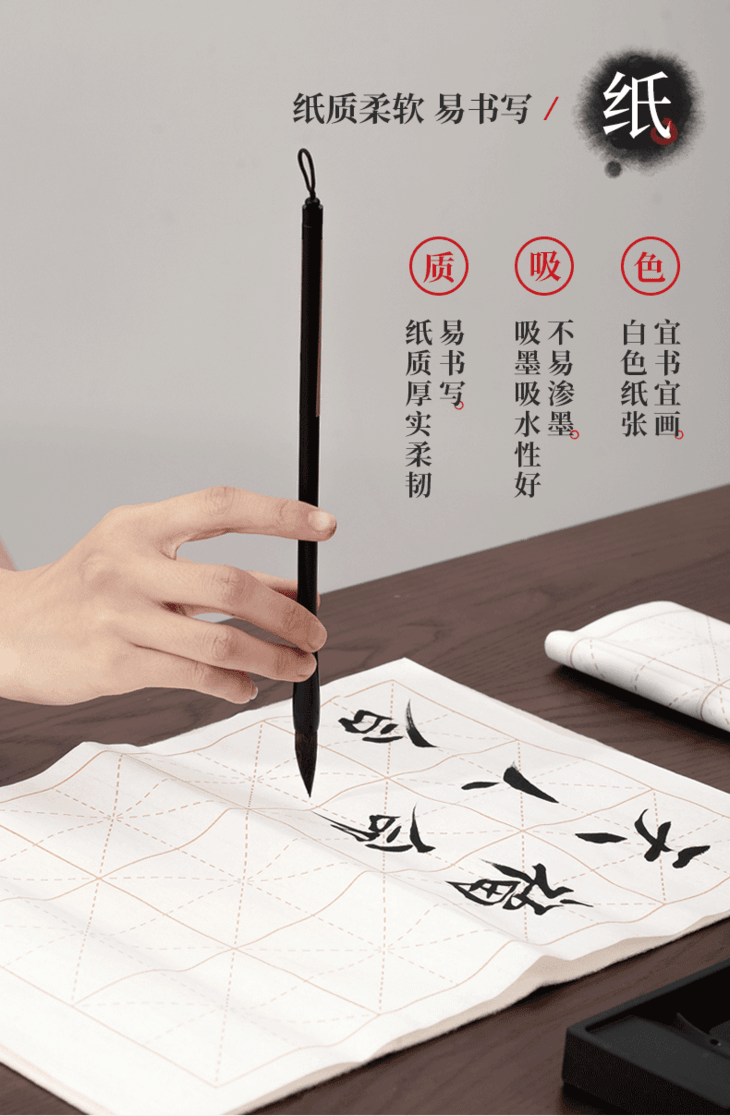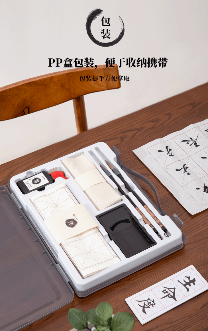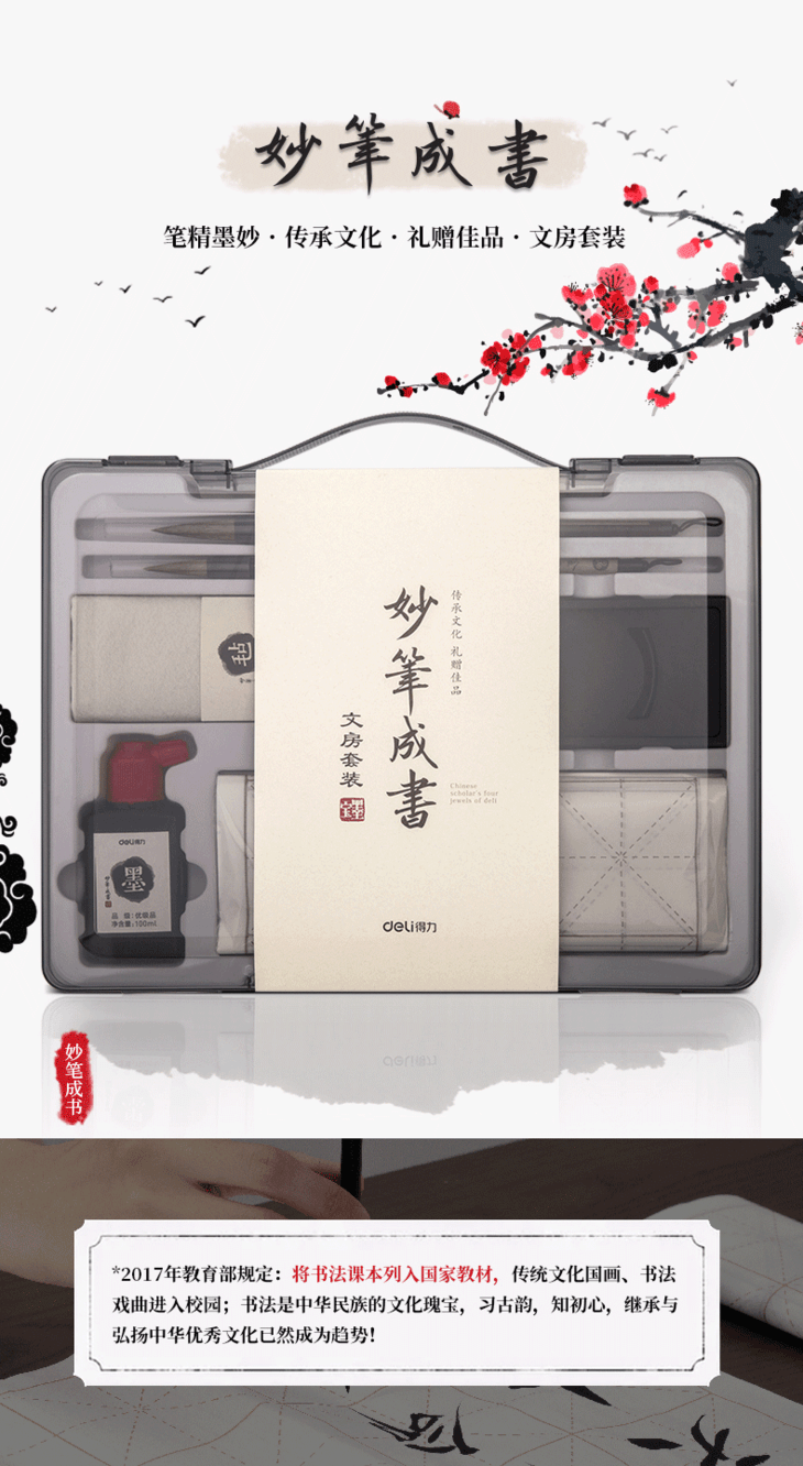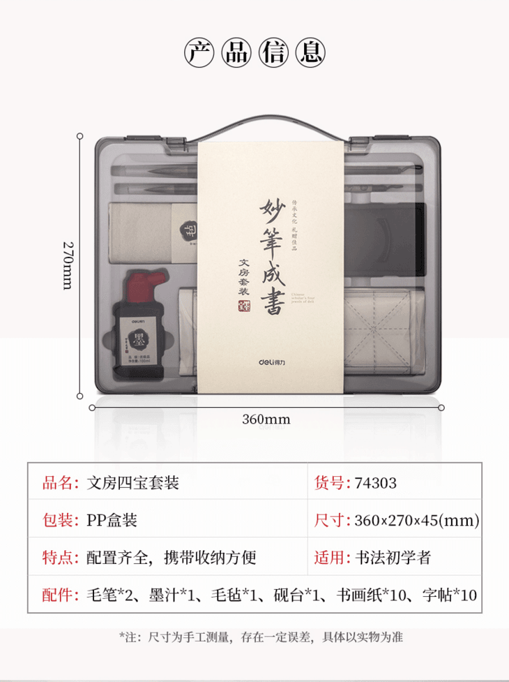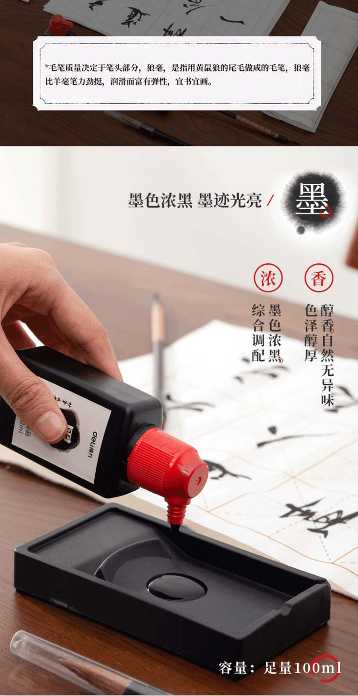 【得力文房四宝,初学者入门套装】得力狼毫毛笔练字帖小学生成人大楷小楷书法用品练习套装儿童专用墨碟墨水墨汁毛毡轻量砚台书画纸笔墨纸砚临摹精品仿宣水写布礼盒