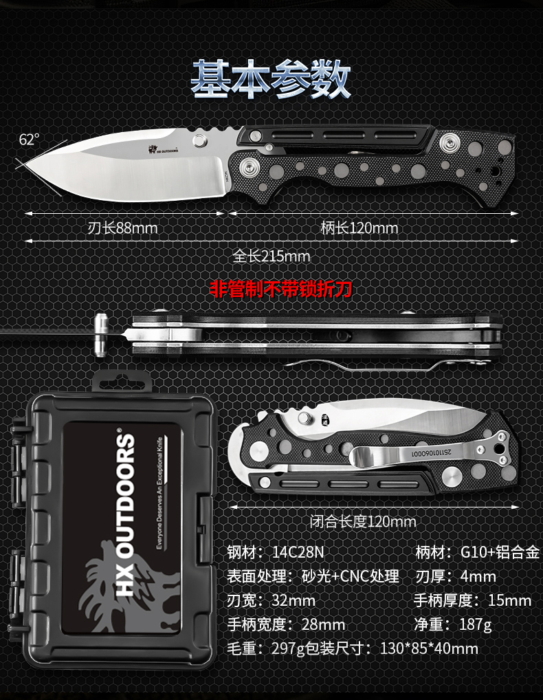汉道【摩羯折刀】户外锋利随身折叠刀野外求生刀