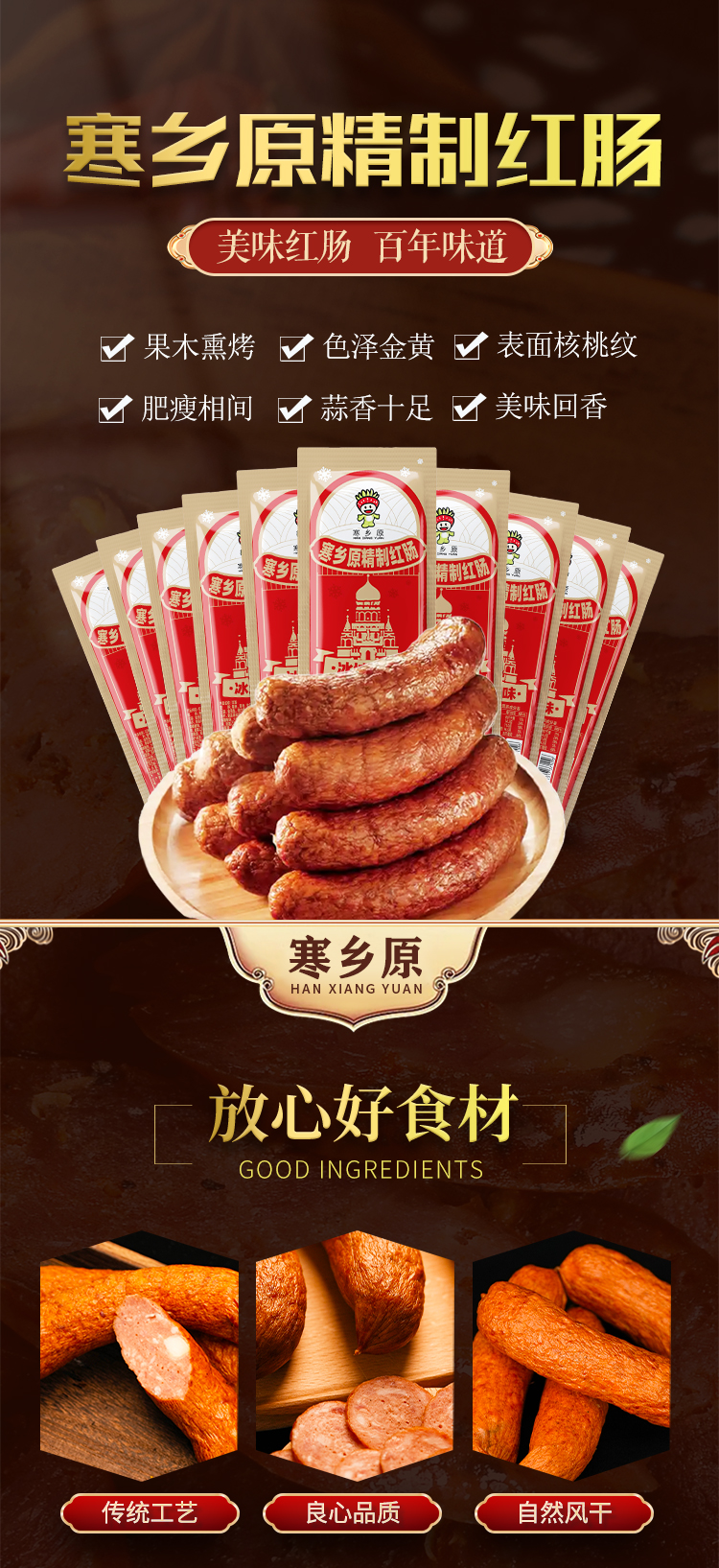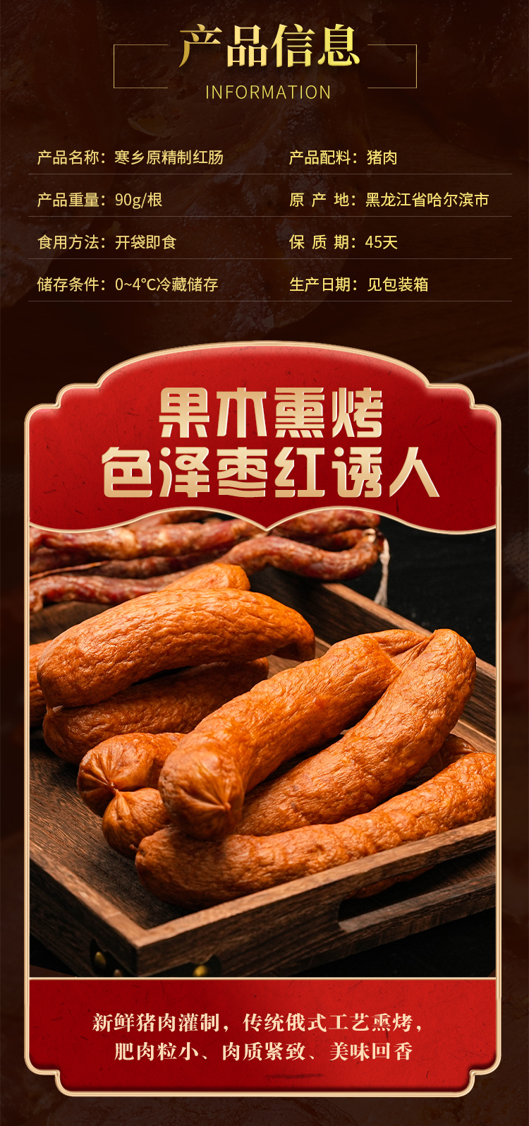 [4盒]寒乡原原味黑胡椒爆汁鲜肉烤肠无淀粉无冻肉爆汁200g/盒