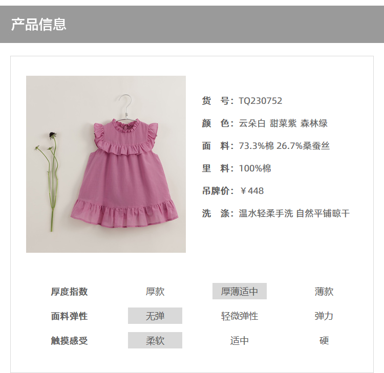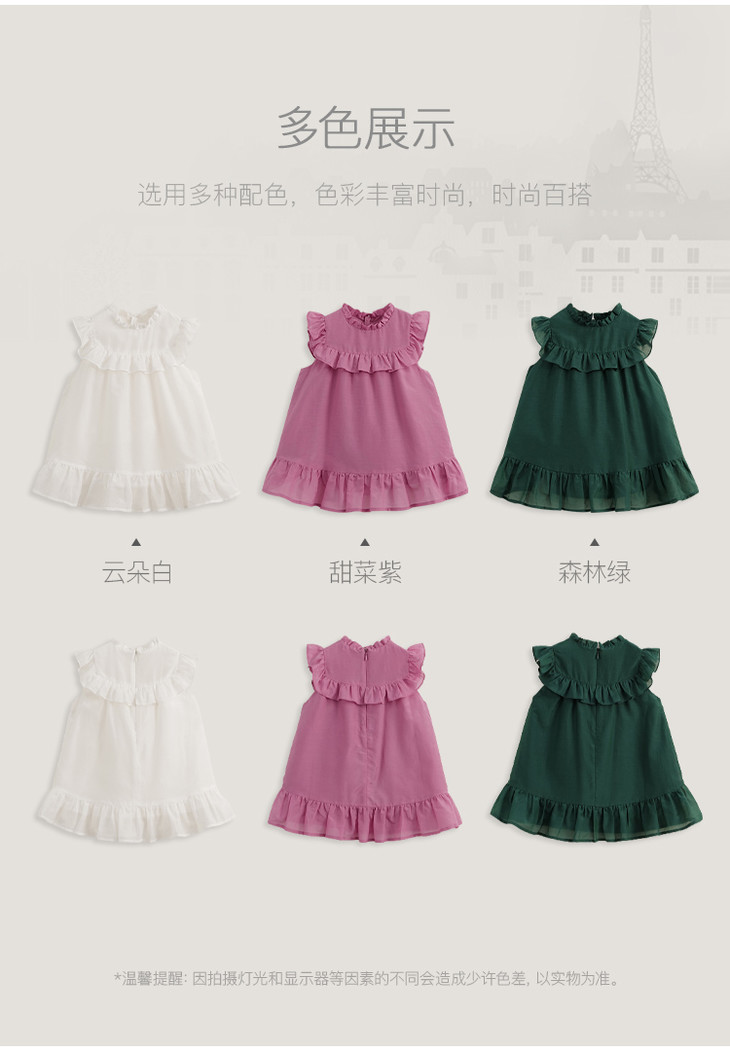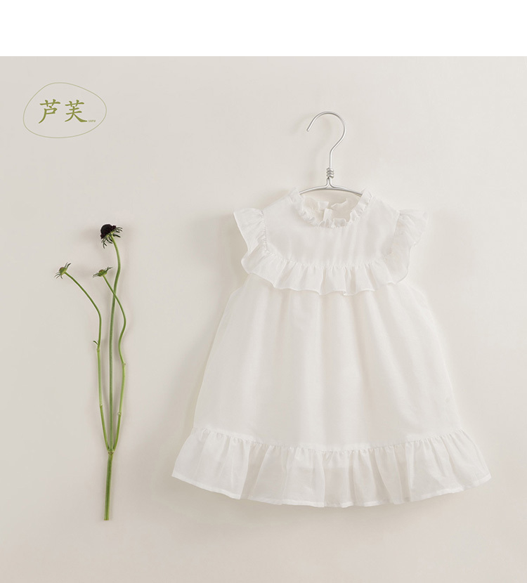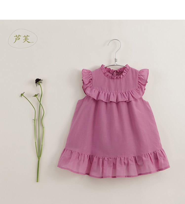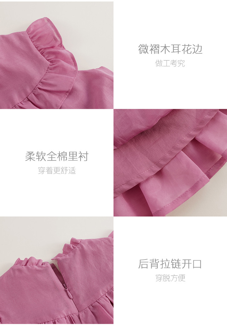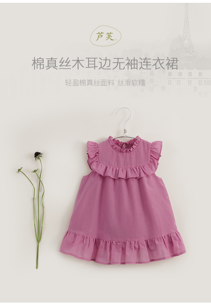 【马克珍妮 芦芙】夏装新款 女童棉真丝木耳边连衣裙230752