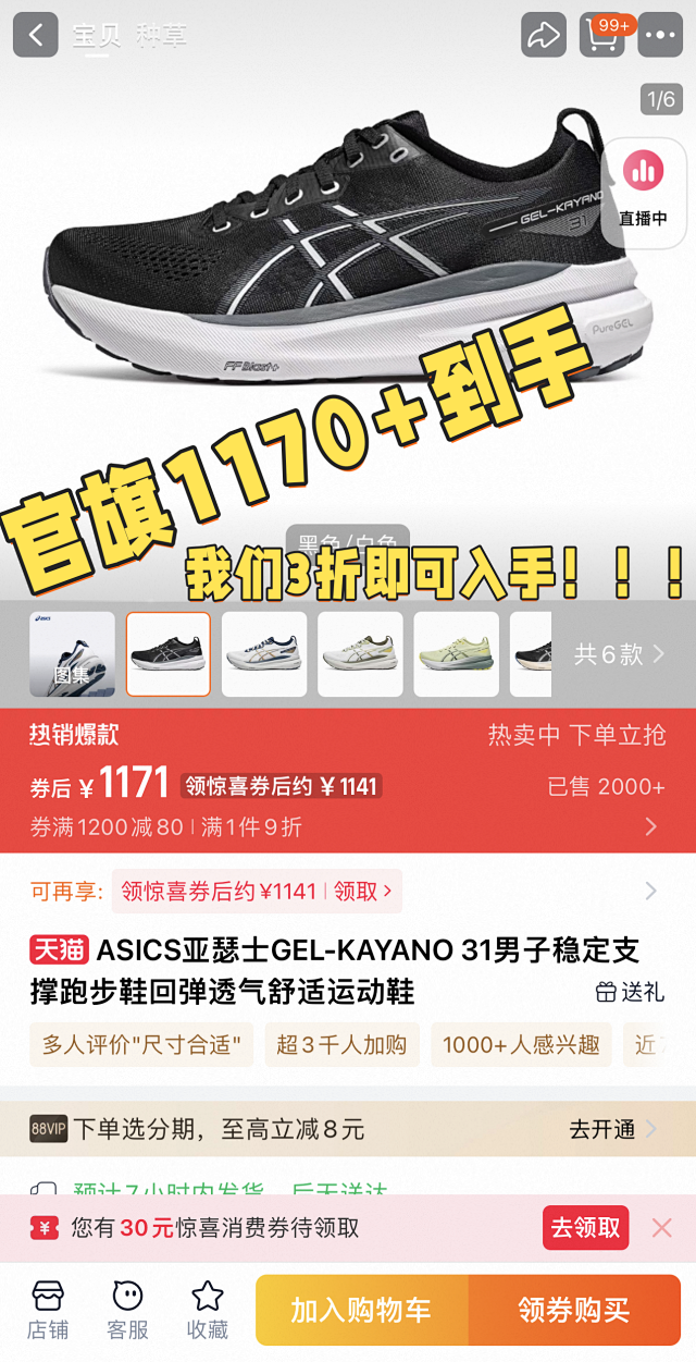 【官旗原价1390】【亚瑟士运动鞋跑鞋Gel-Kayano31】兼顾舒适、缓震、支撑、轻量化,适合各个阶段 3-7天发货