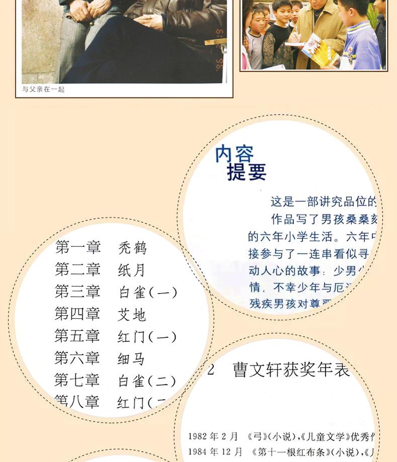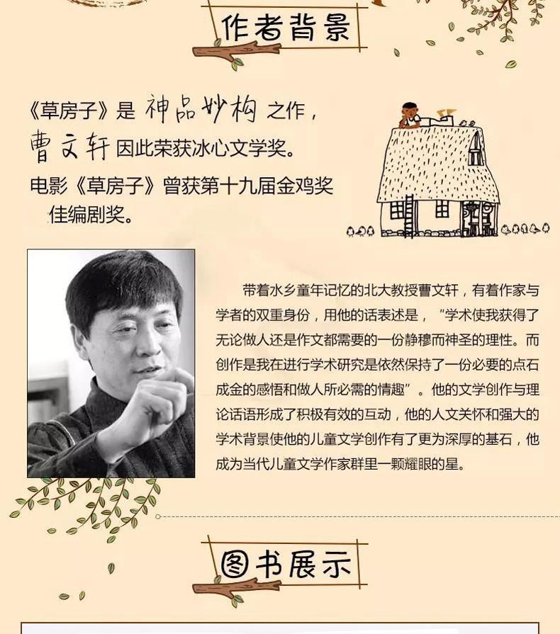 《草房子》是一部讲究品位的少年长篇小说。作品写了男孩桑桑刻骨铭心,终身难忘的六年小学生活。六年中,他亲眼目睹或直接参与了一连串看似寻常但又催人泪下、撼动人心的故事:少男少女之间毫无瑕疵的纯情,不幸少年与厄运相拼时的悲怆与优雅,残疾男孩对尊严的执著坚守,垂暮老人在最后一瞬所闪耀的人格光彩,在死亡体验中对生命的深切而优美的领悟,大人们之间扑朔迷离且又充满诗情画意的情感纠葛……这一切,既清楚又朦胧地展现在少年桑桑的世界里。这六年,是他接受人生启蒙教育的六年。