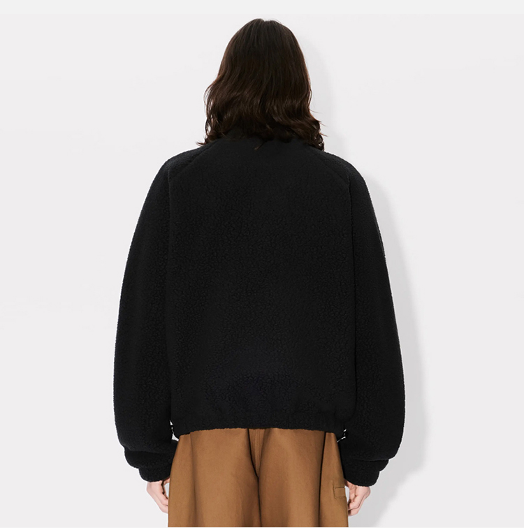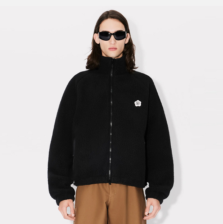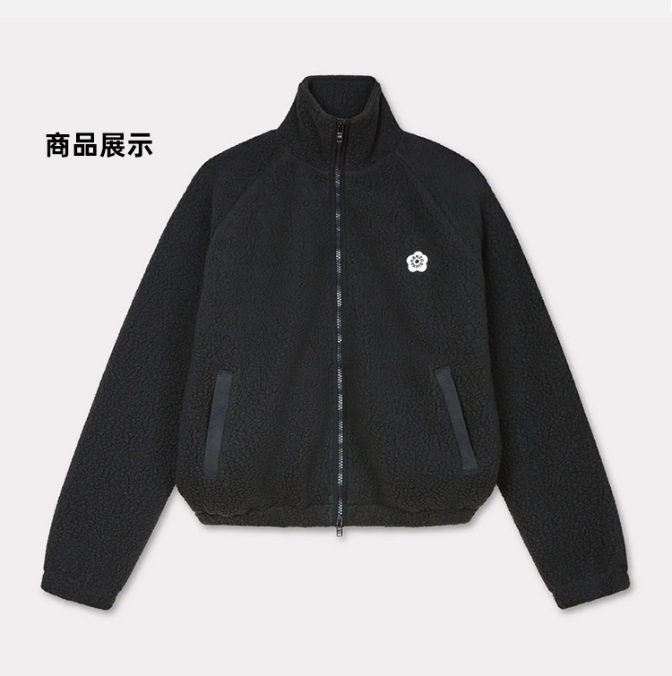 KENZO 高田贤三 男士小海棠花刺绣徽标摇粒绒夹克外套 黑色 FE65 SW211 4FC 99J