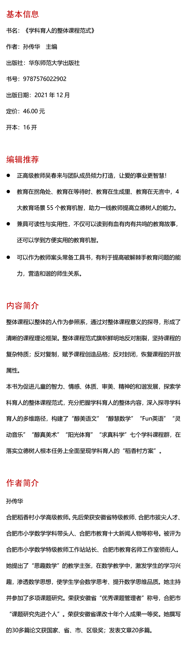 学科育人的整体课程范式 品质课程聚焦丛书 整体课程体系校本建构 小学案例 教师用书 孙传华主编 正版 华东师范大学出版社