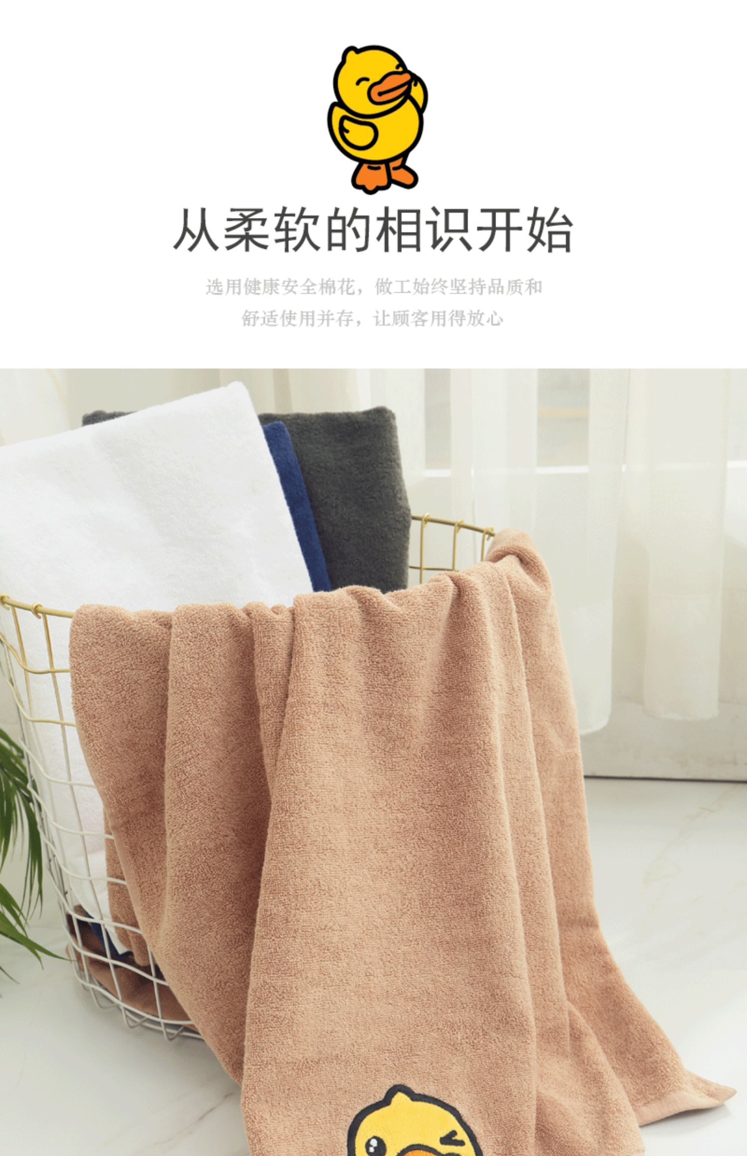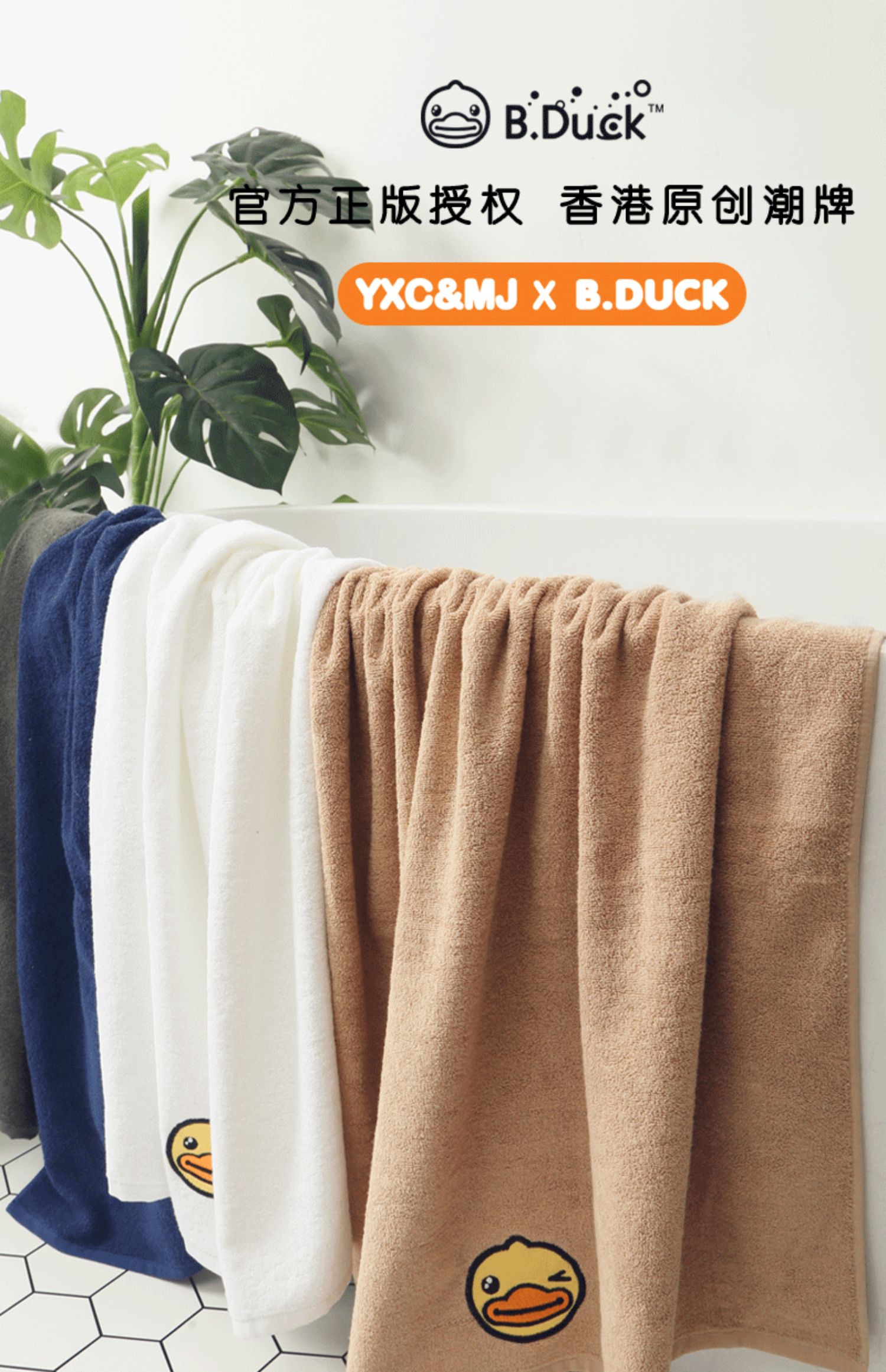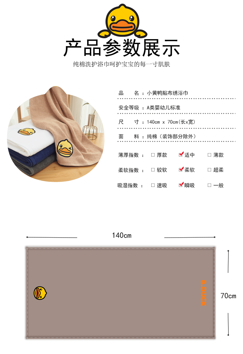 B.Duck小黄鸭素色贴布刺绣大浴巾140*70cm 148