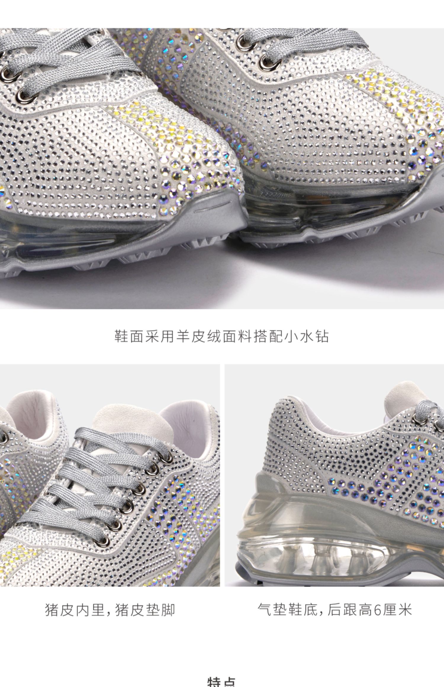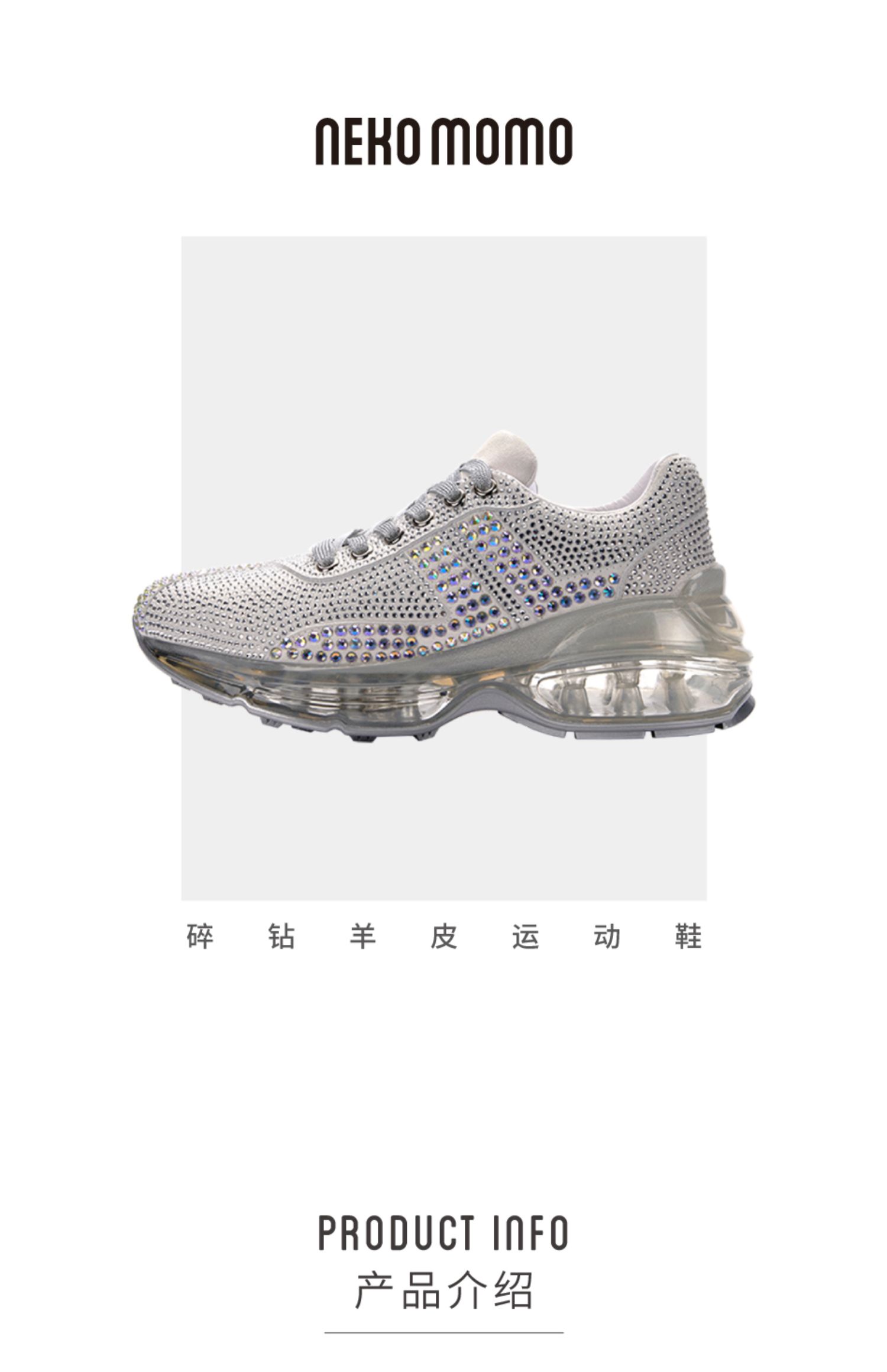 nekomomo2022年秋冬新款商场同款牛皮水钻运动气垫厚底老爹鞋女