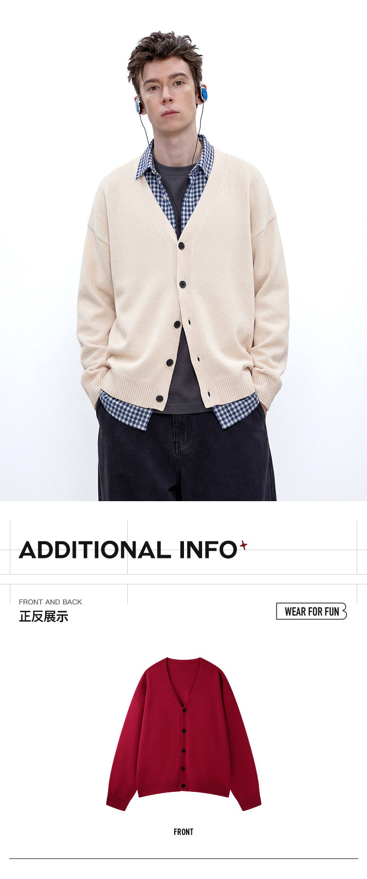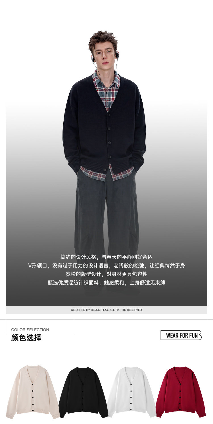 BJHG不计后果V领开衫毛衣男春季 新款基础款情侣装内搭上衣外套女