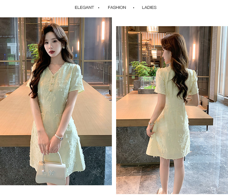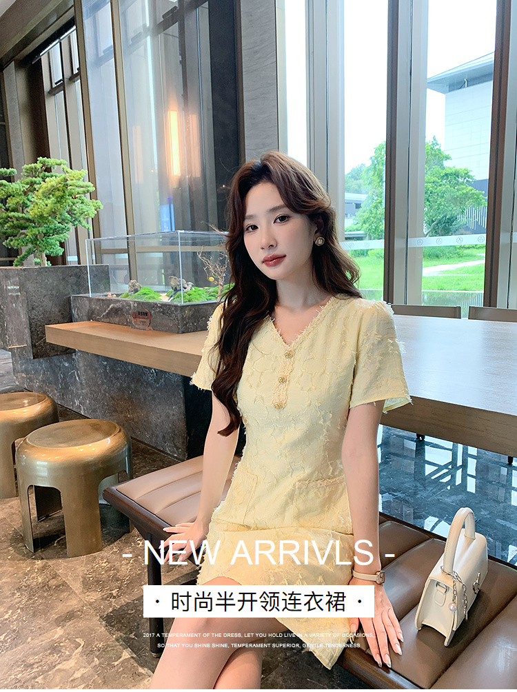 奢姿大码女装2026夏季减龄粗花半开领连衣裙胖妹妹时尚轻奢裙子9952869852