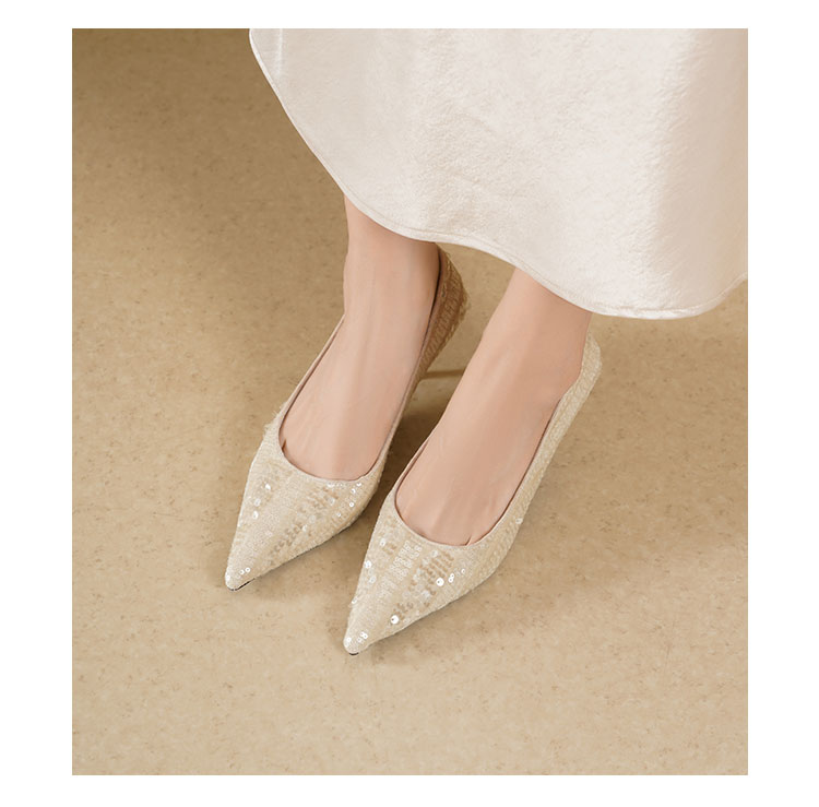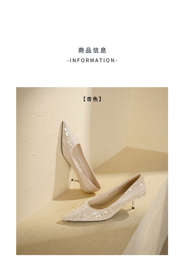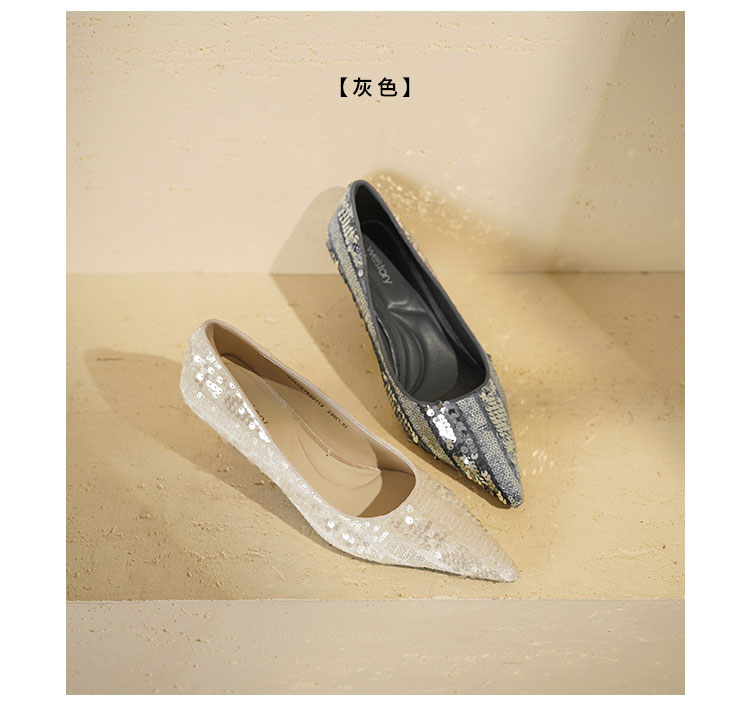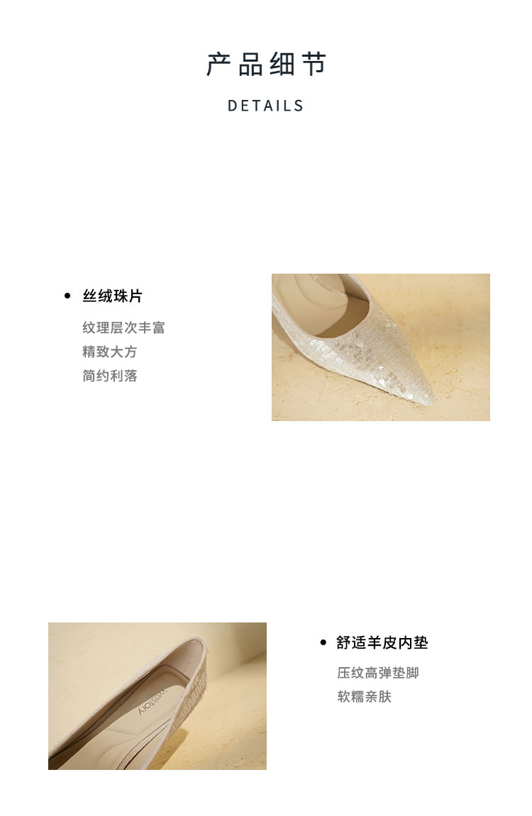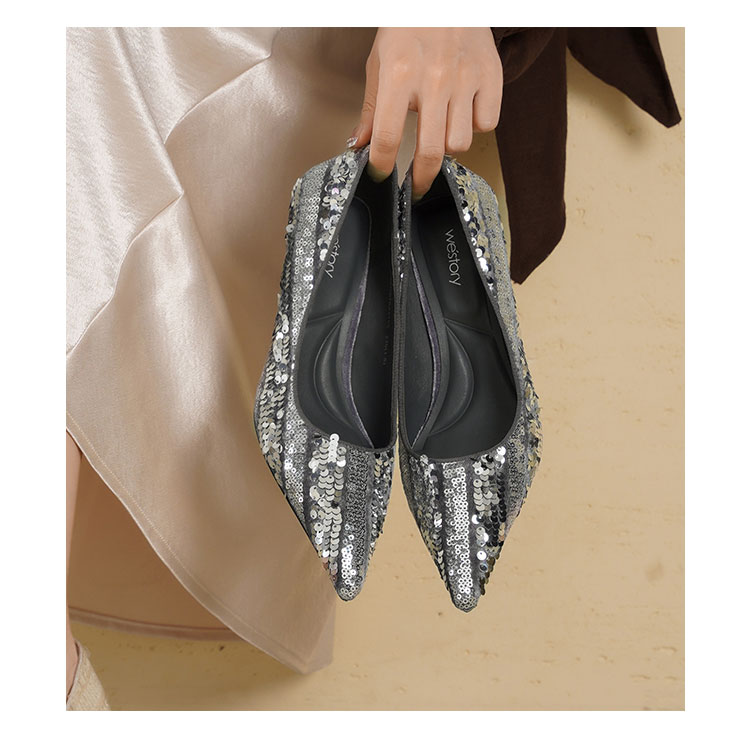 Westory2025年秋季鎏光珠片尖头中跟单鞋宴会鞋通勤浅口鞋W25CE76221