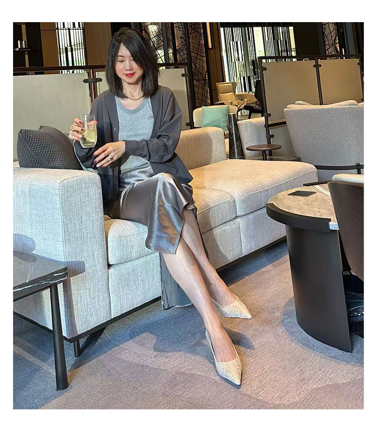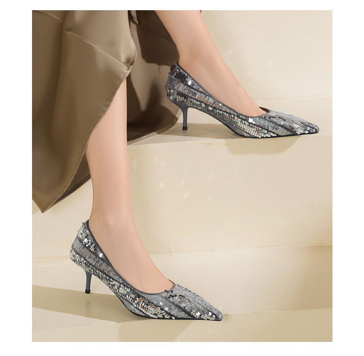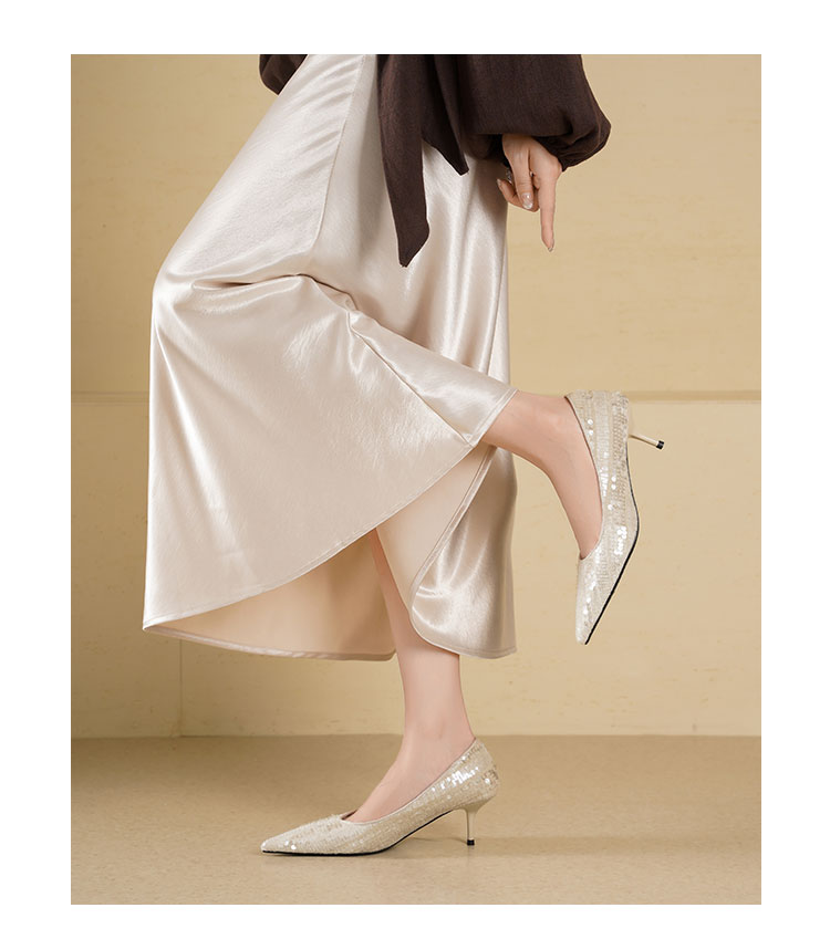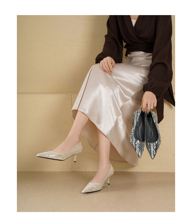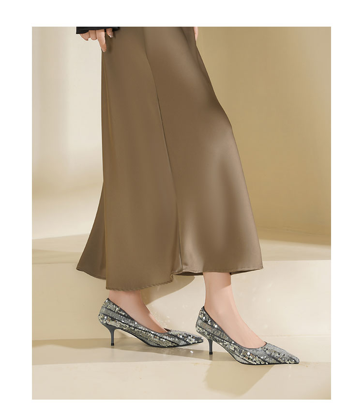 Westory2025年秋季鎏光珠片尖头中跟单鞋宴会鞋通勤浅口鞋W25CE76221