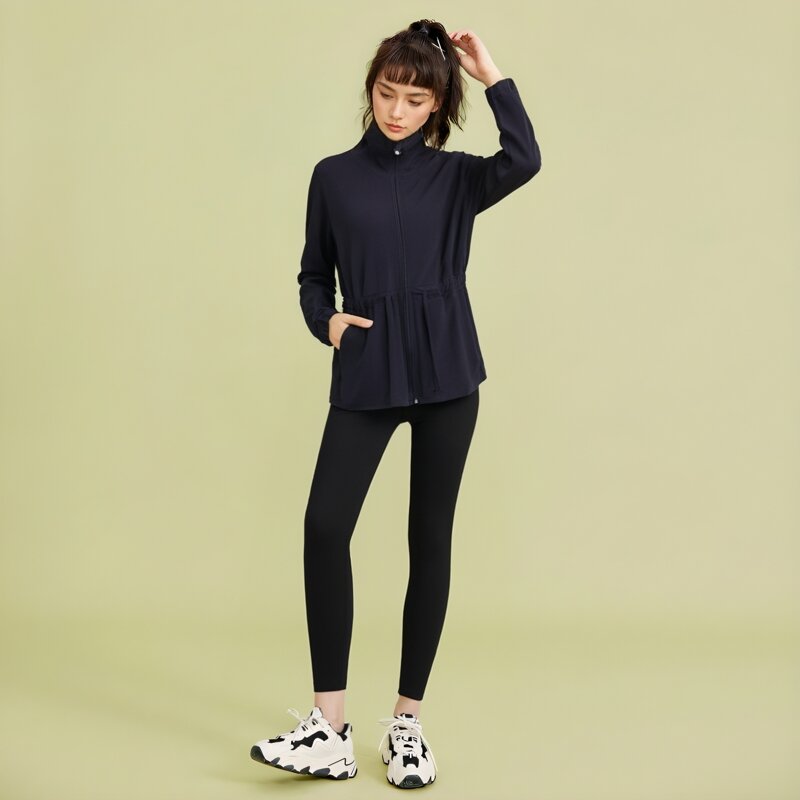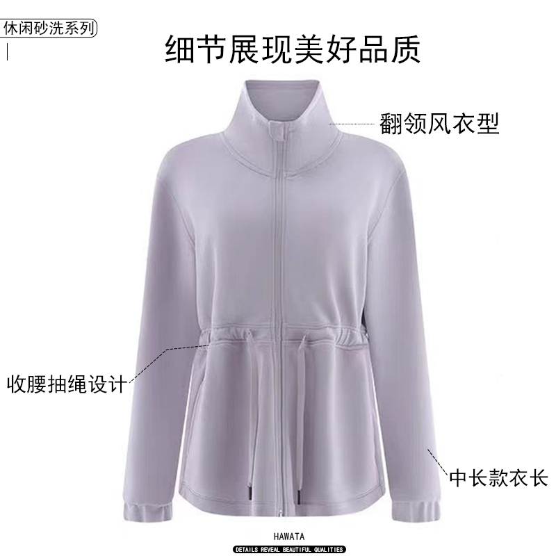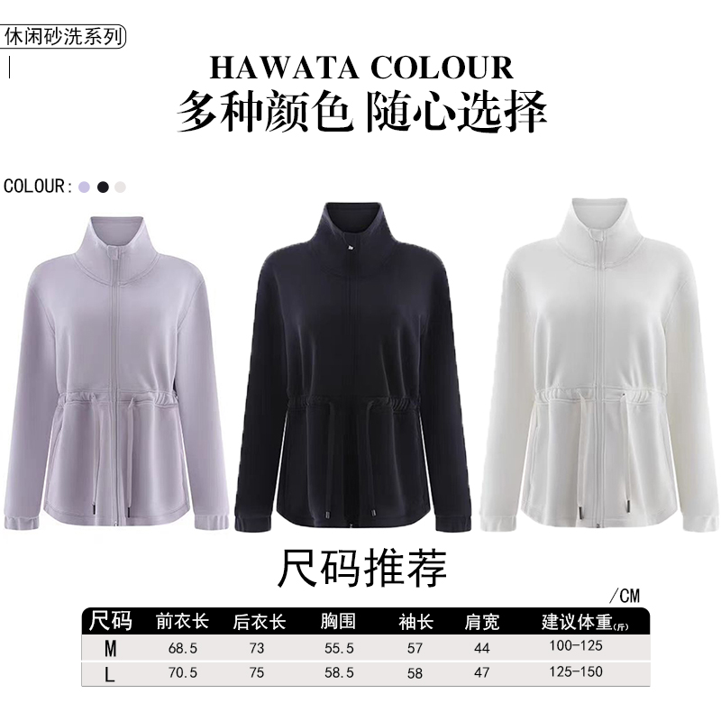 哈瓦塔砂洗抽绳收腰时尚风衣H34120