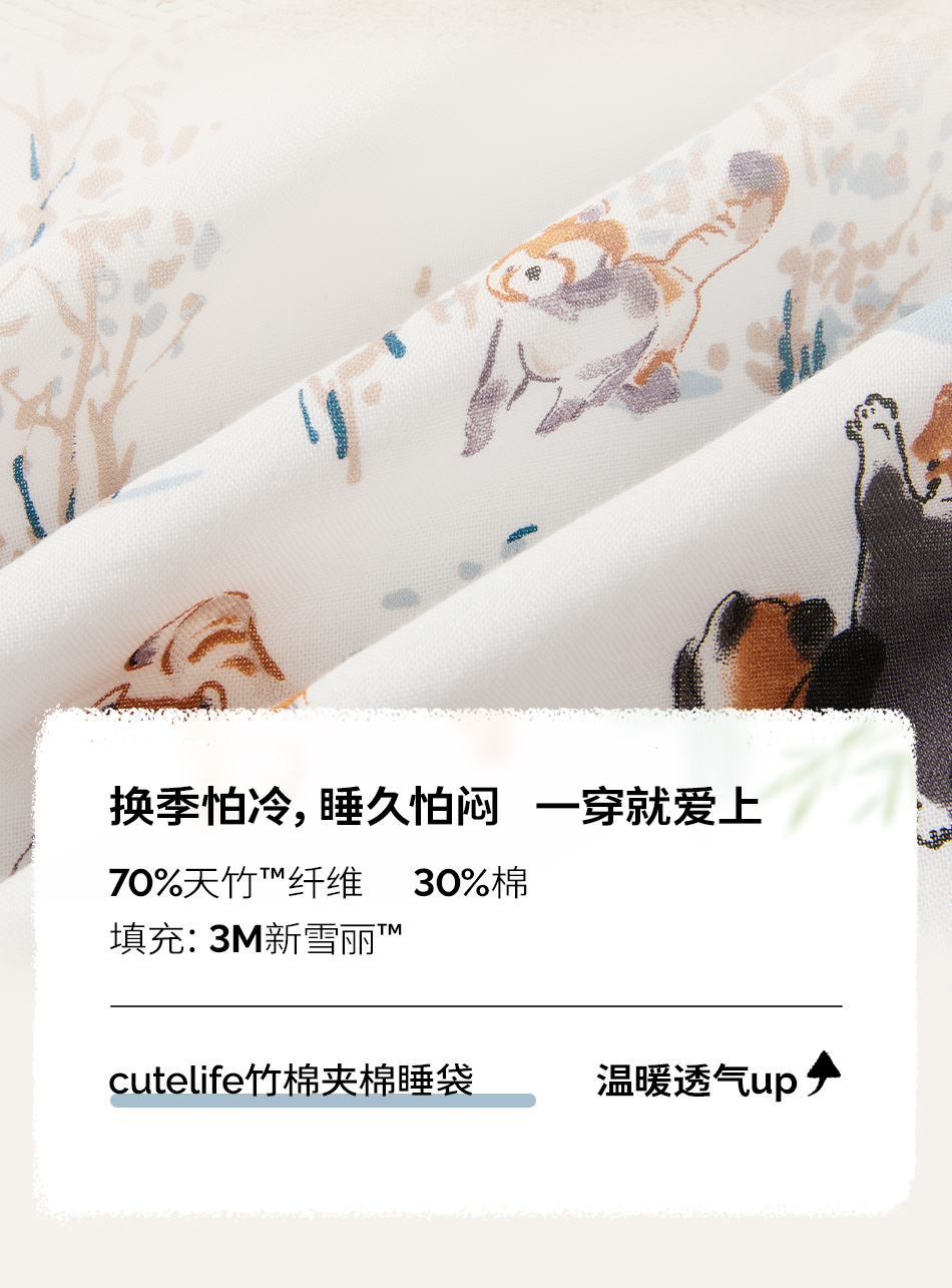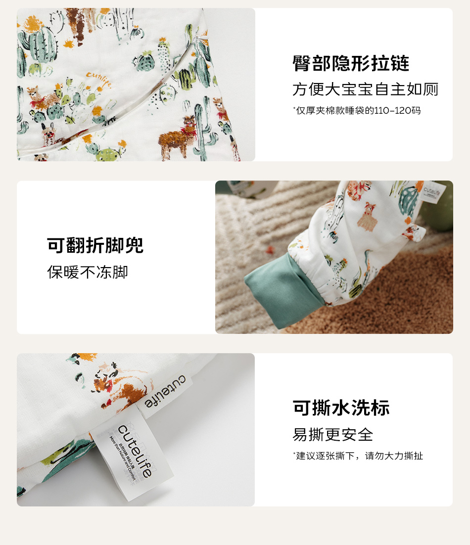 【云优选】cutelife薄厚夹棉睡袋秋冬婴儿睡袋儿童宝宝秋冬款睡袋夹棉加厚