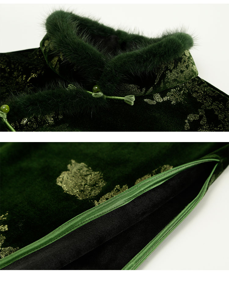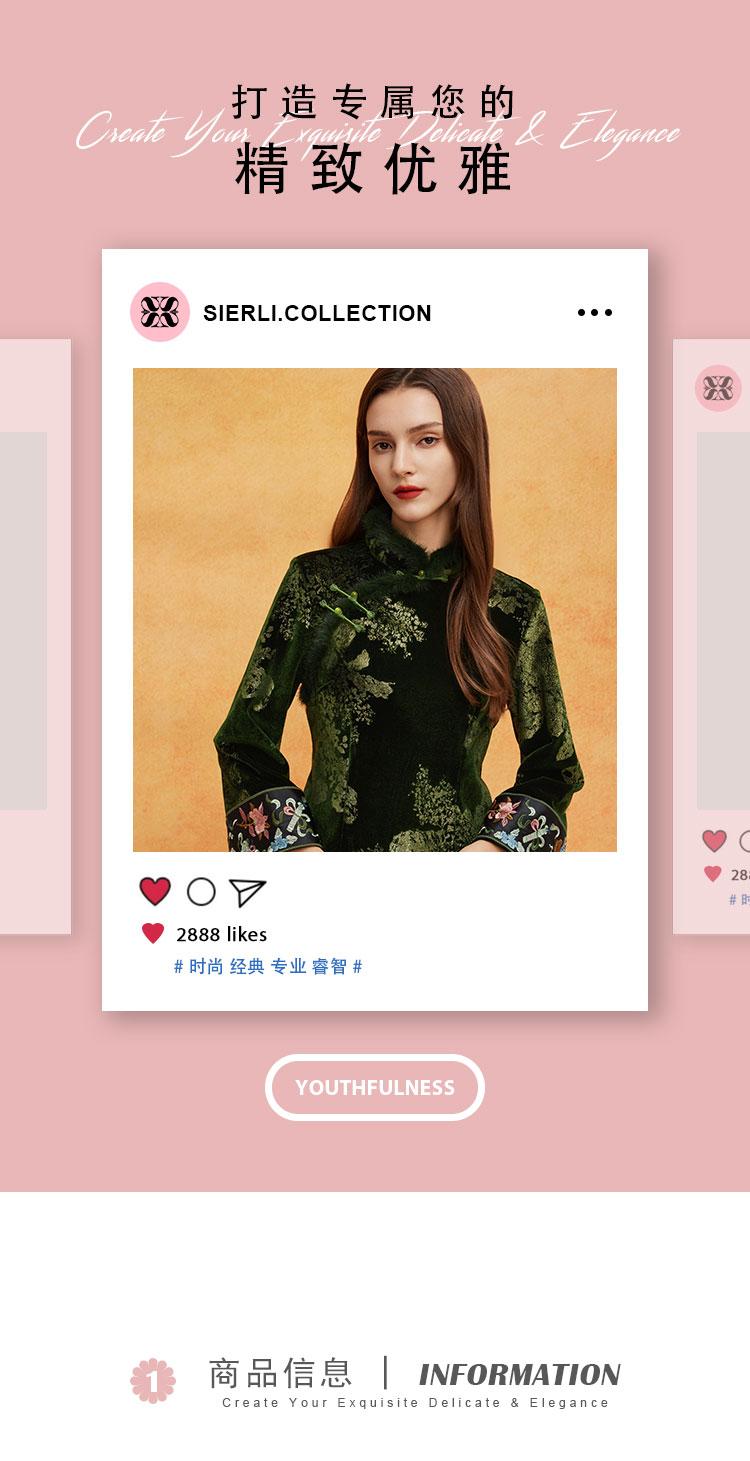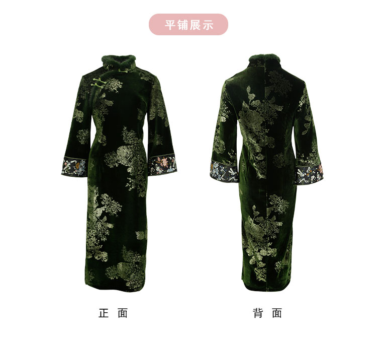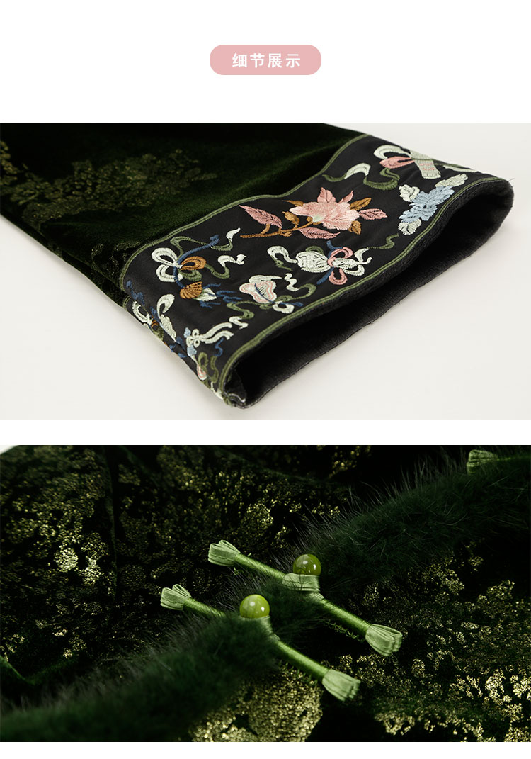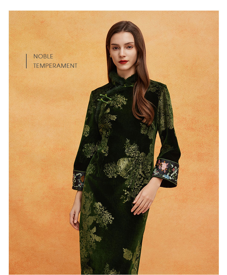 QE807斯尔丽25春季新中式喜庆百年战袍烫金印花袖口刺绣领口门襟旗袍