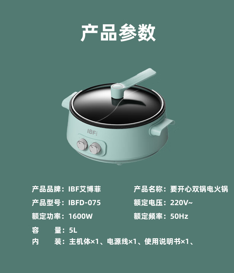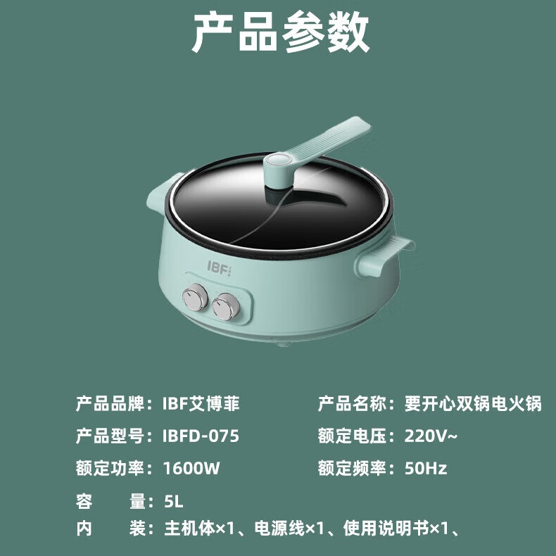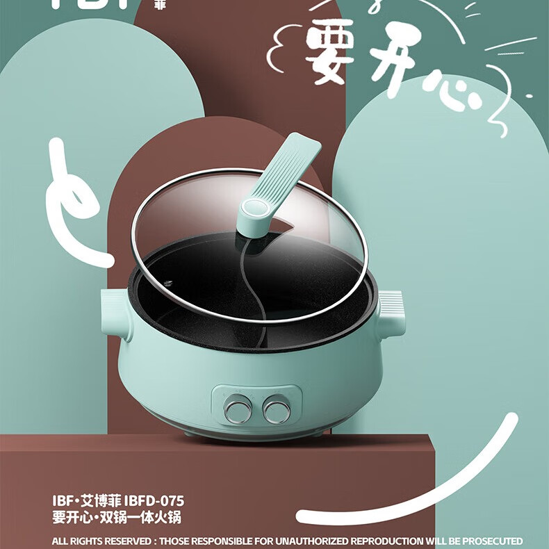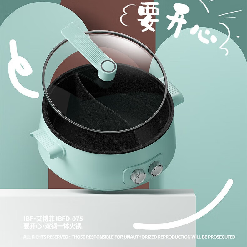 IBF艾博菲艾博菲要开心·双锅一体电火锅_蓝色【K】