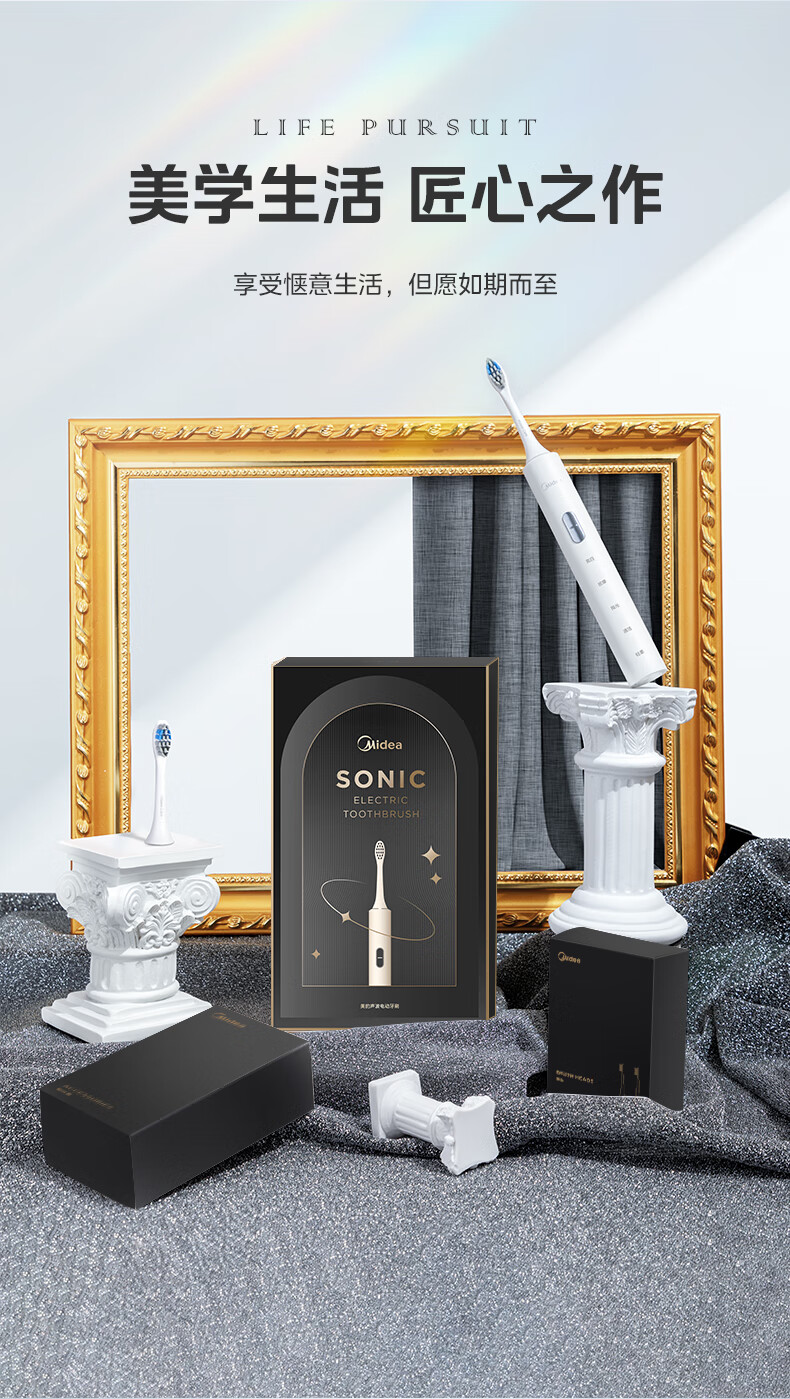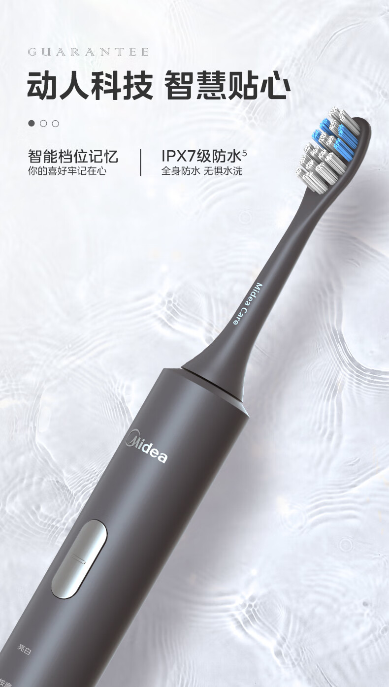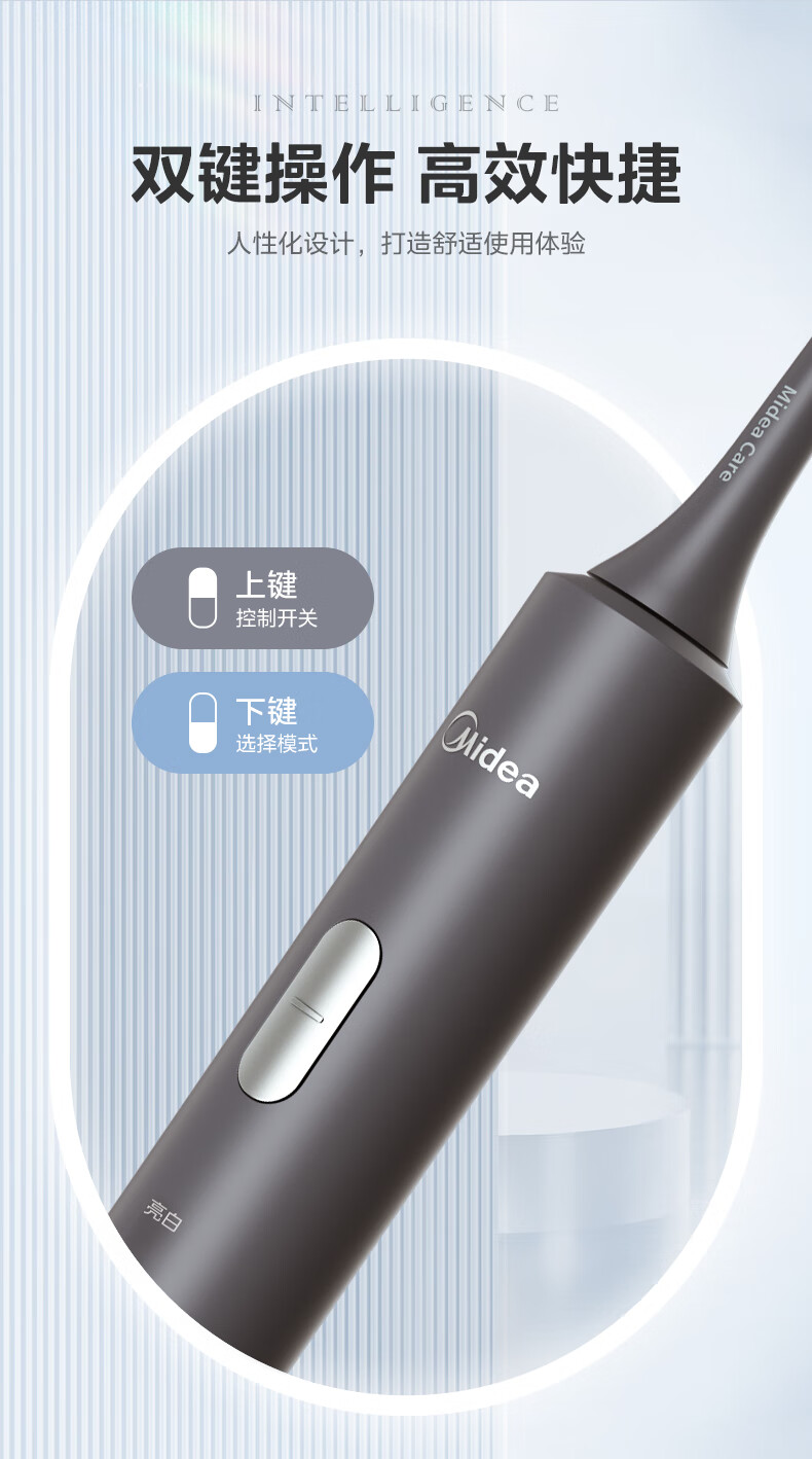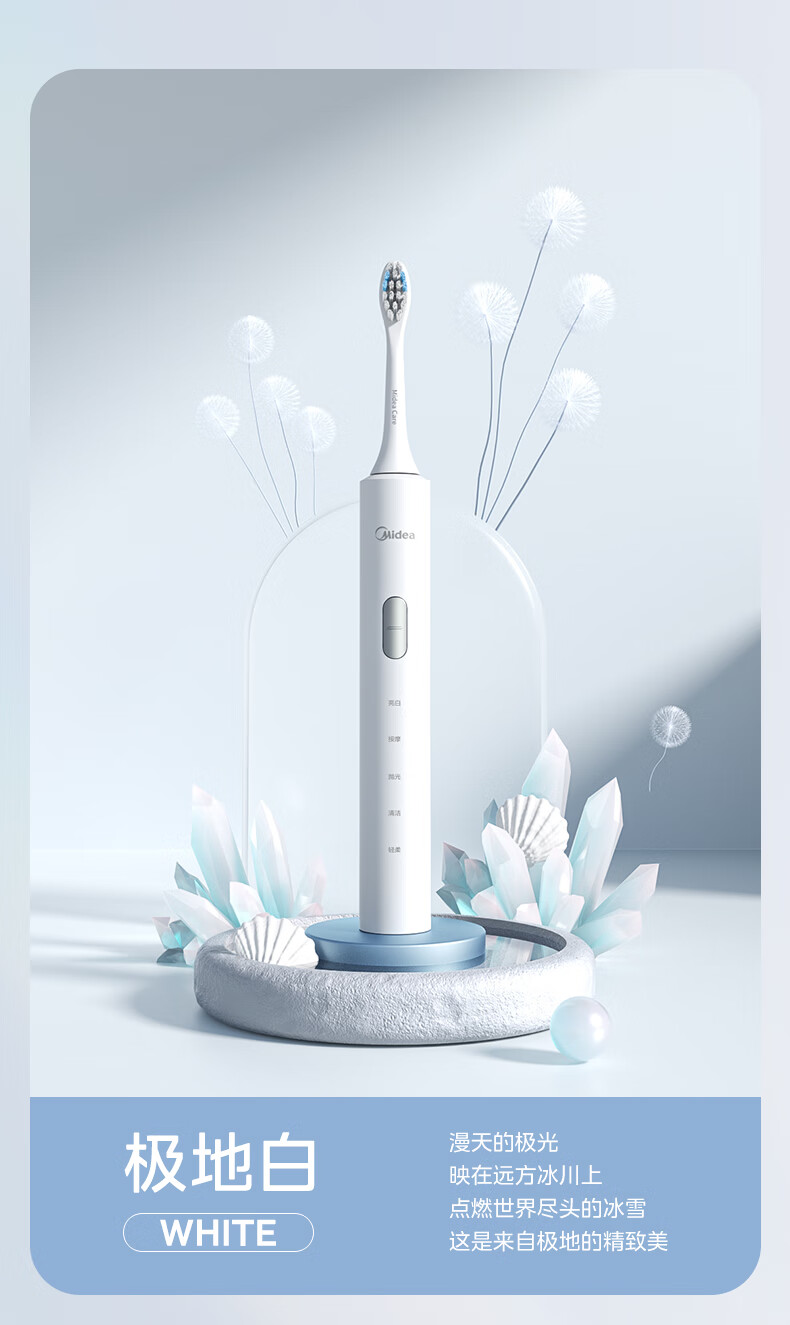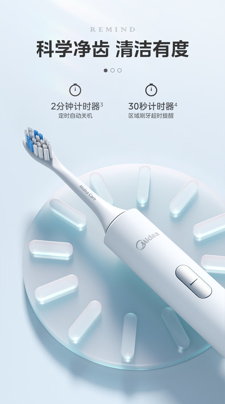 美的(Midea)S1P 电动牙刷成人/学生 声波震动 300天长续航 智能换区 软毛刷头*2 情侣款 礼物 (1)