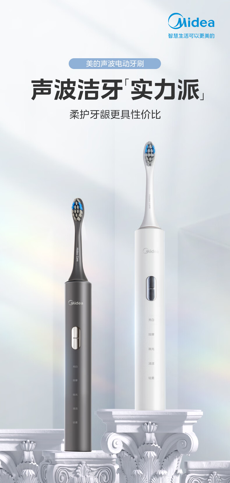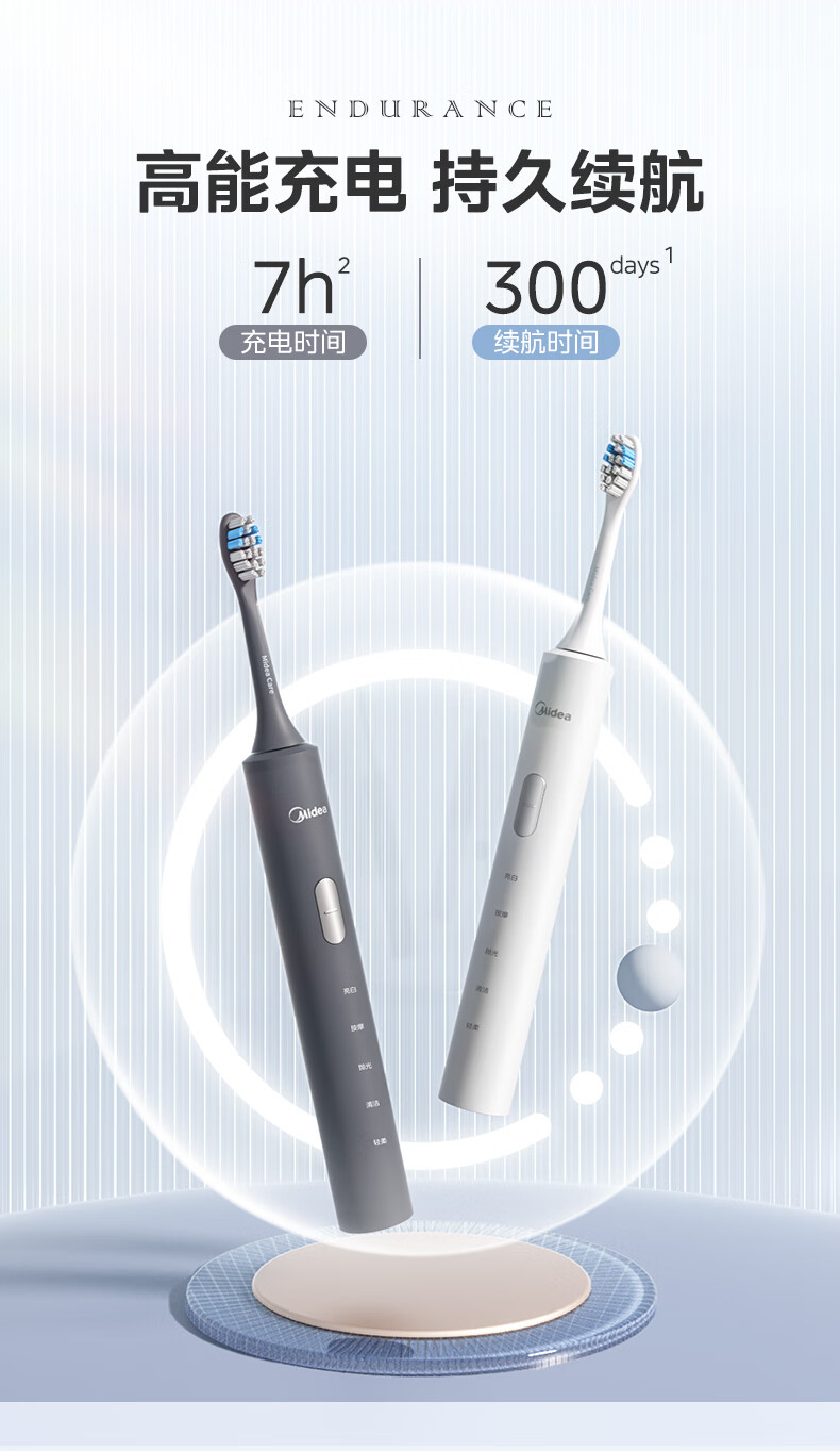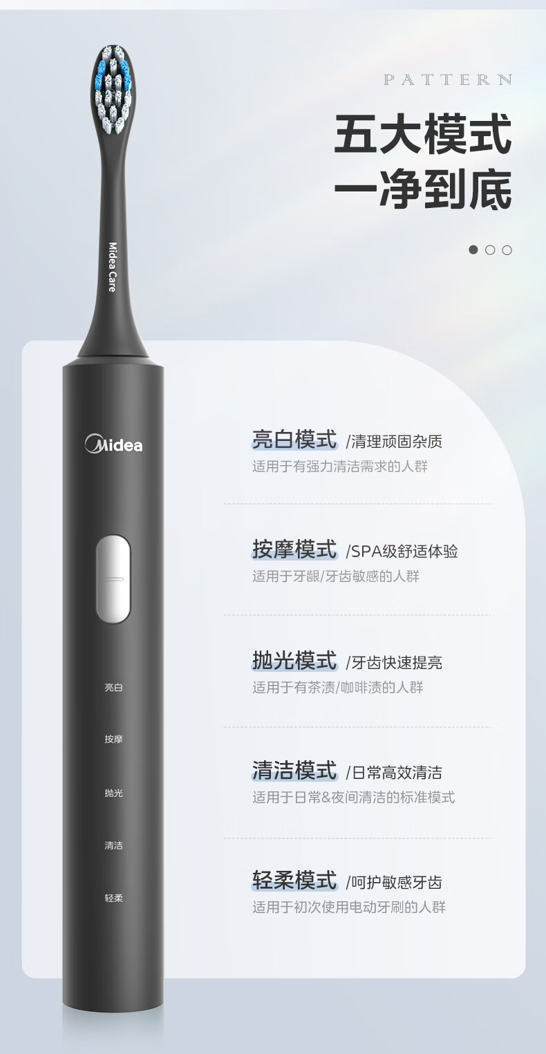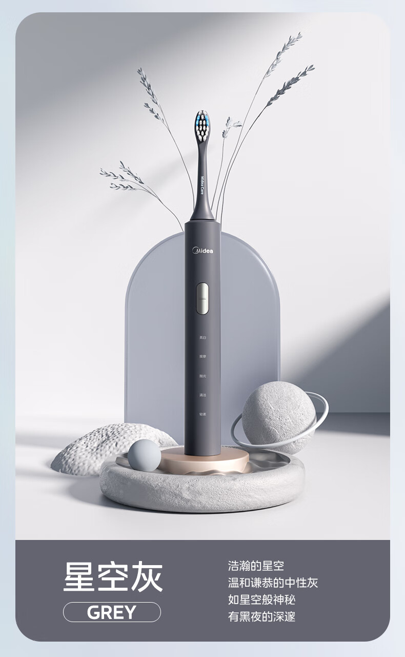 美的(Midea)S1P 电动牙刷成人/学生 声波震动 300天长续航 智能换区 软毛刷头*2 情侣款 礼物 (1)