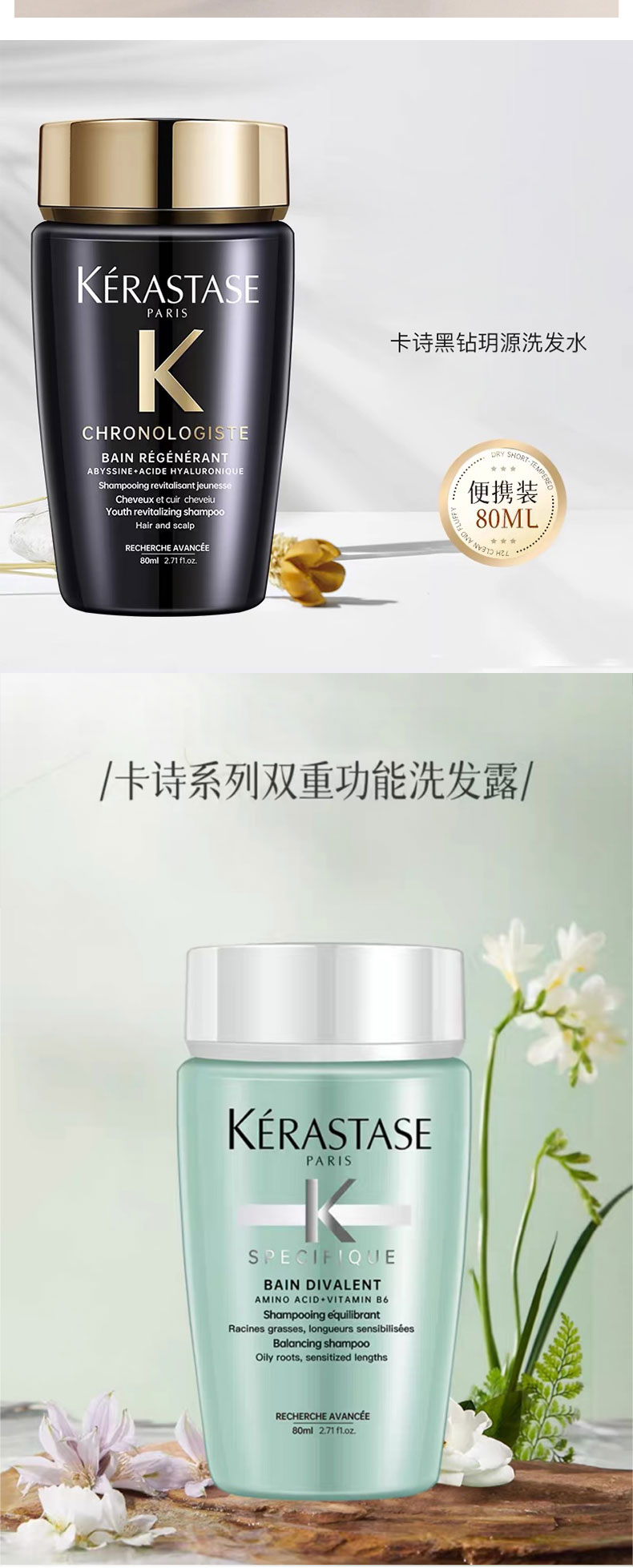卡诗洗发水80ml中小样旅行装 (有效期:2027-08 )A-5228