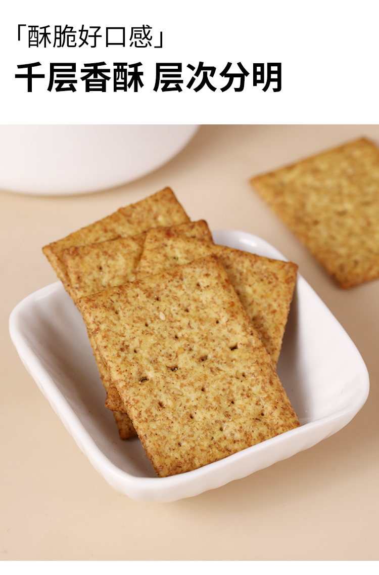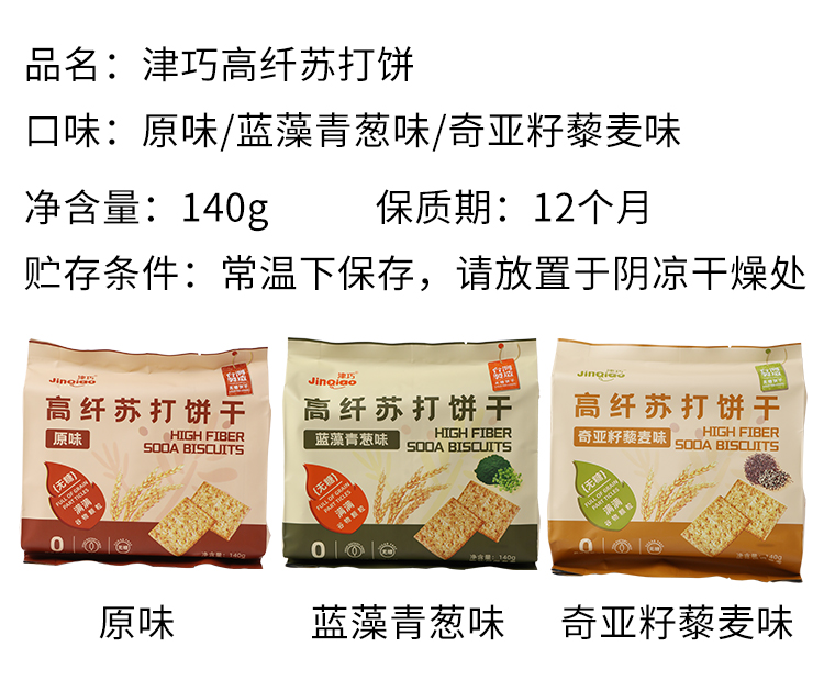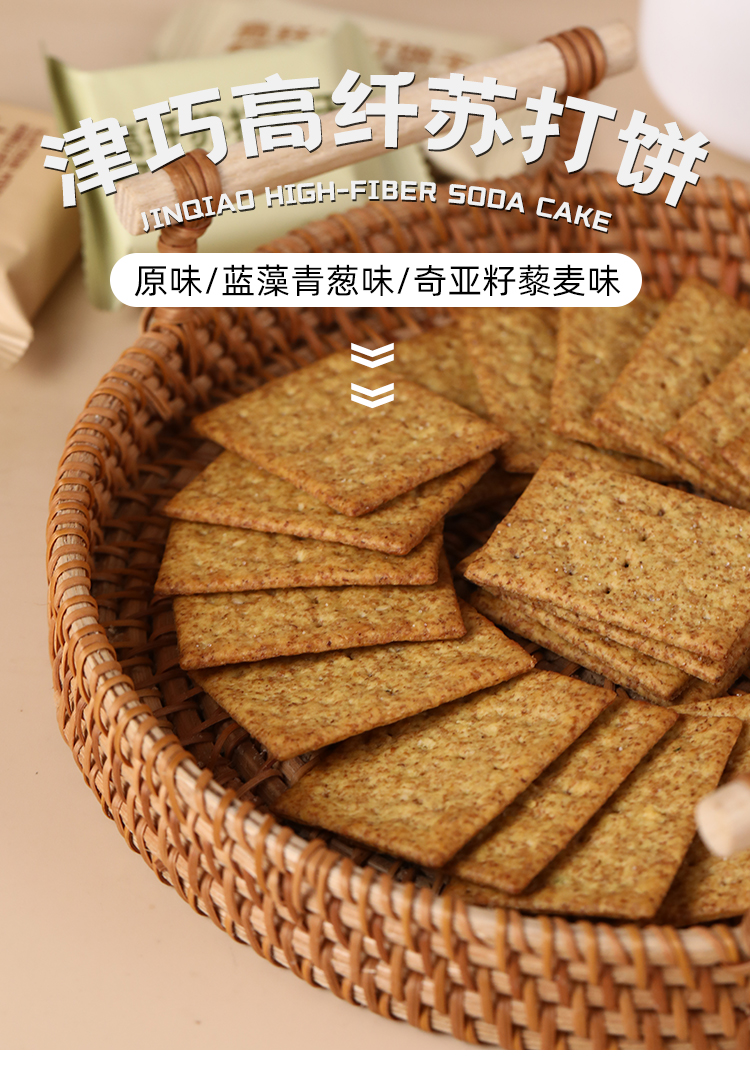 津巧高纤苏打饼蓝藻青葱味/奇亚籽藜麦味/原味140g 千层香酥层次分明 058331/058330/058329