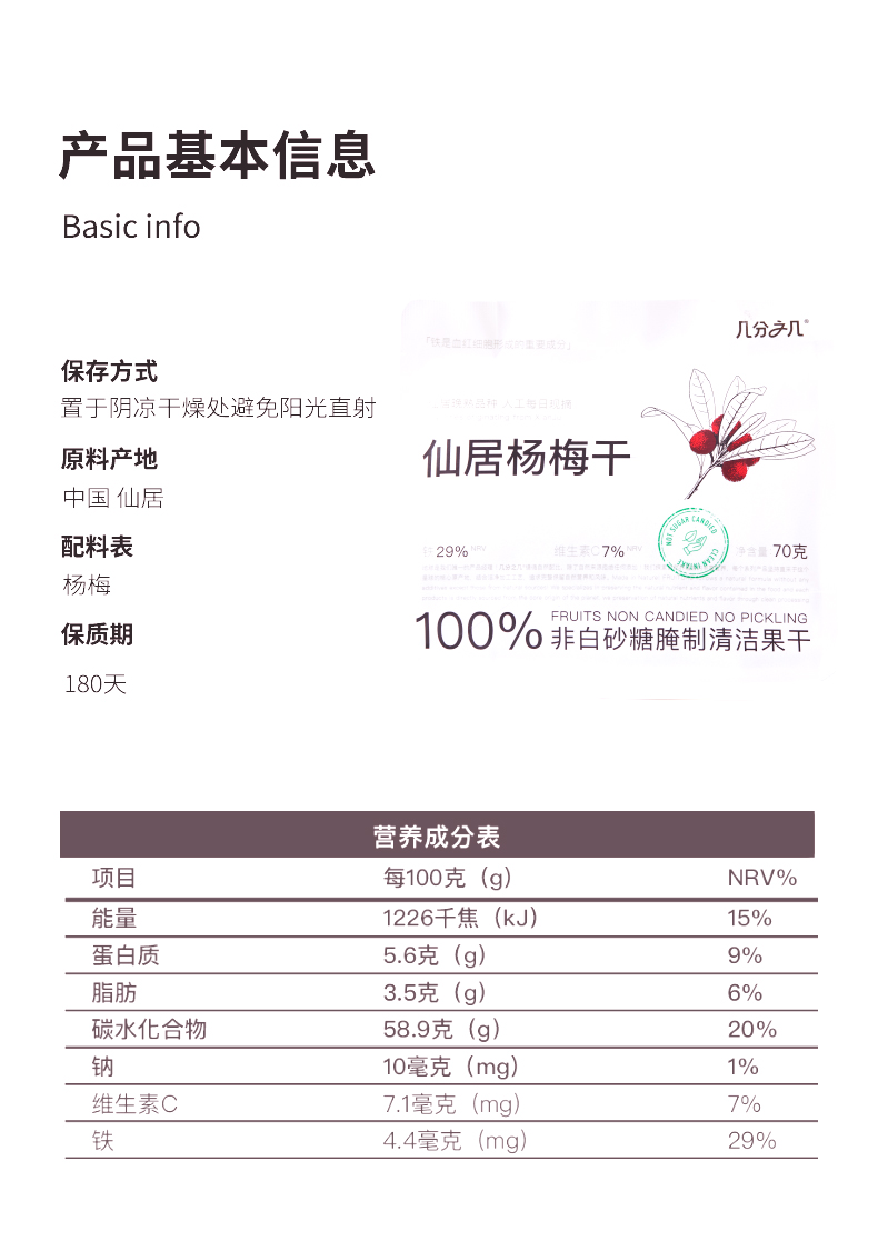 几分之几 仙居杨梅干 70g*2
