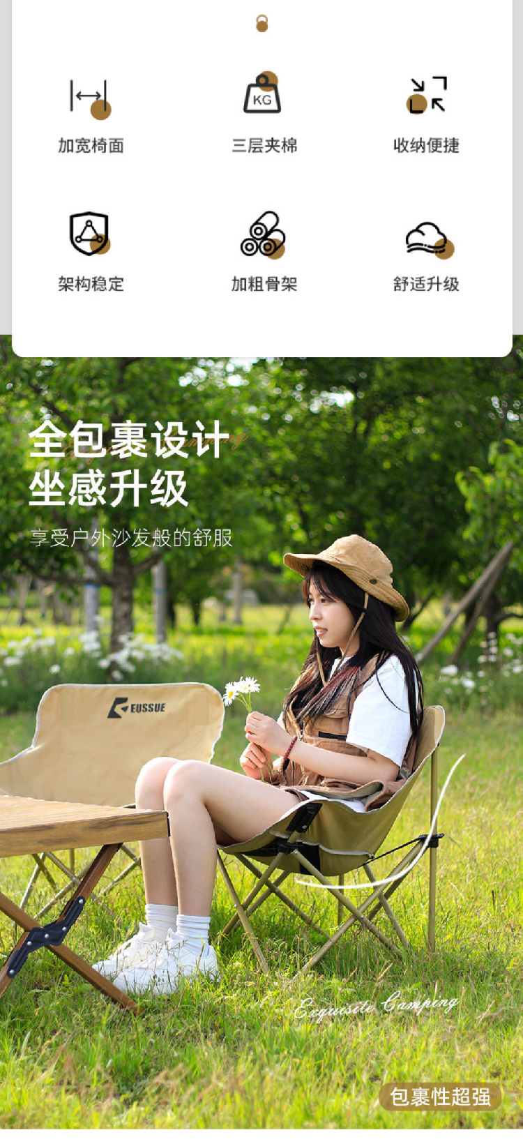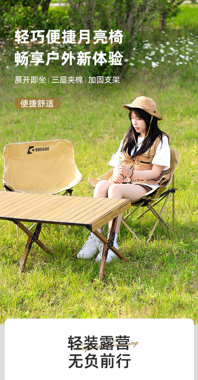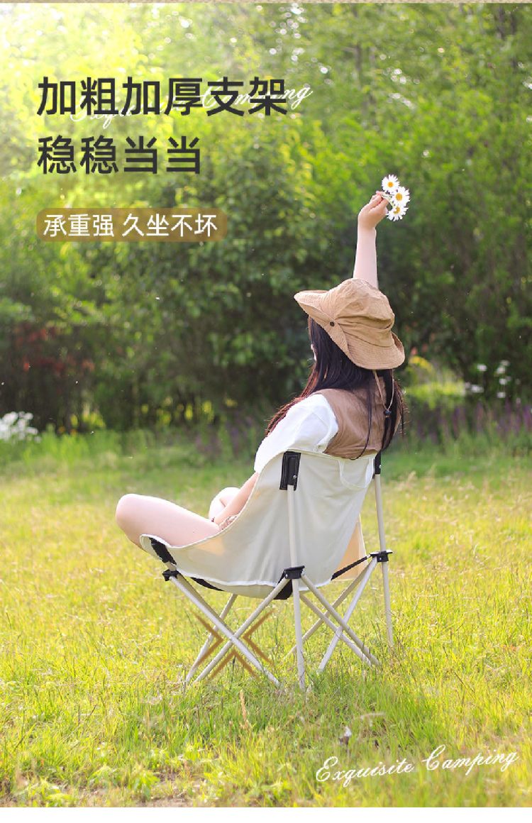 户外便携式折叠椅月亮椅露营野营椅子沙滩椅钓鱼椅批发高背月亮椅