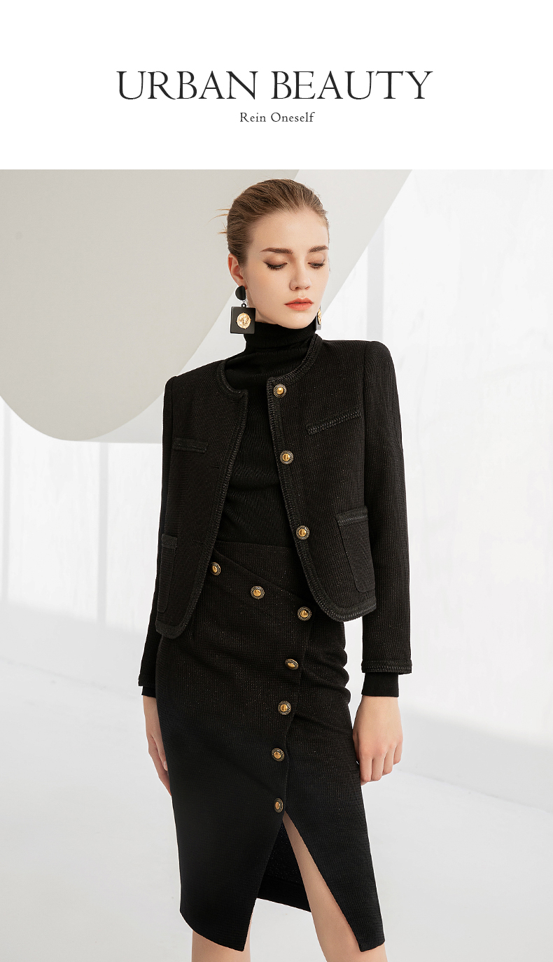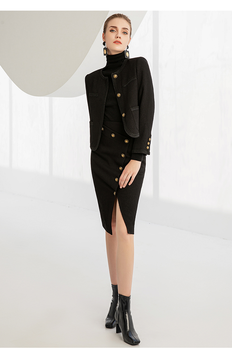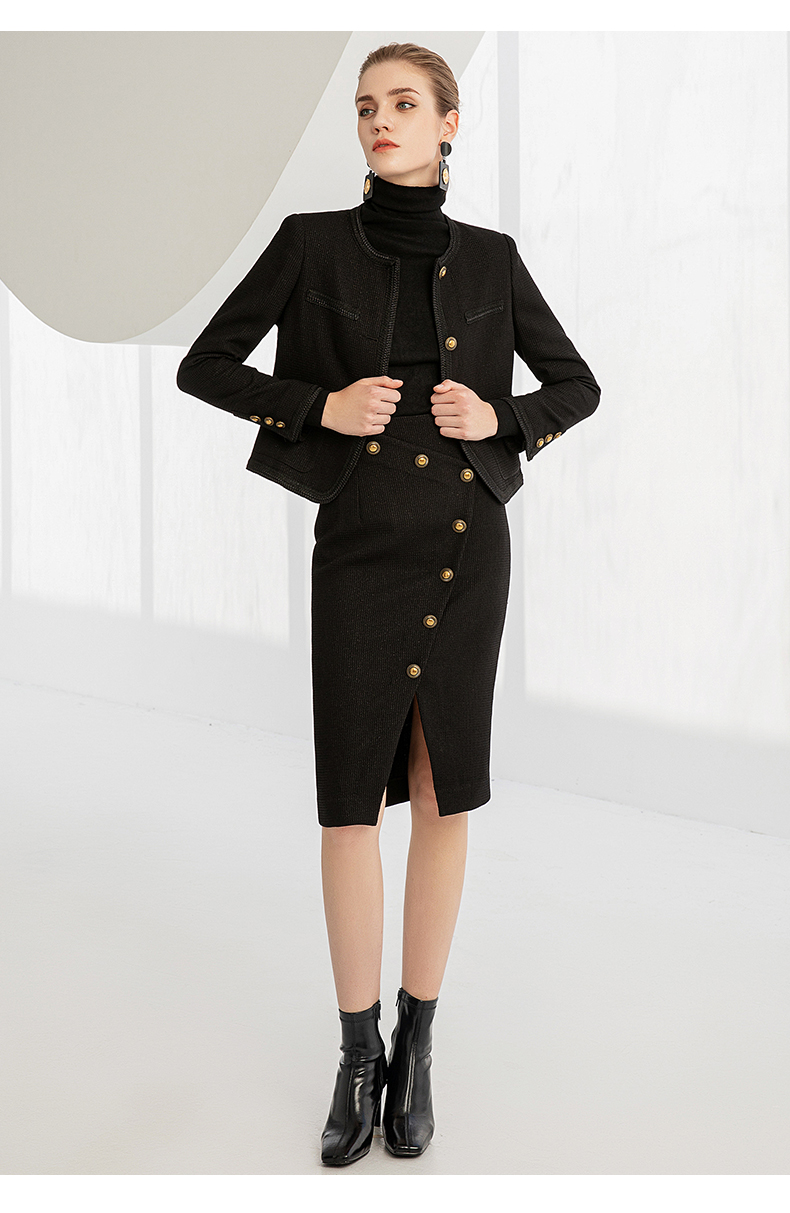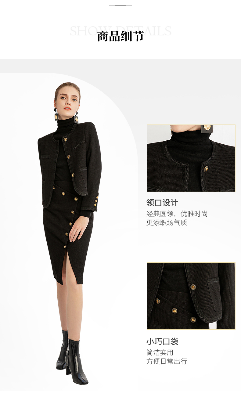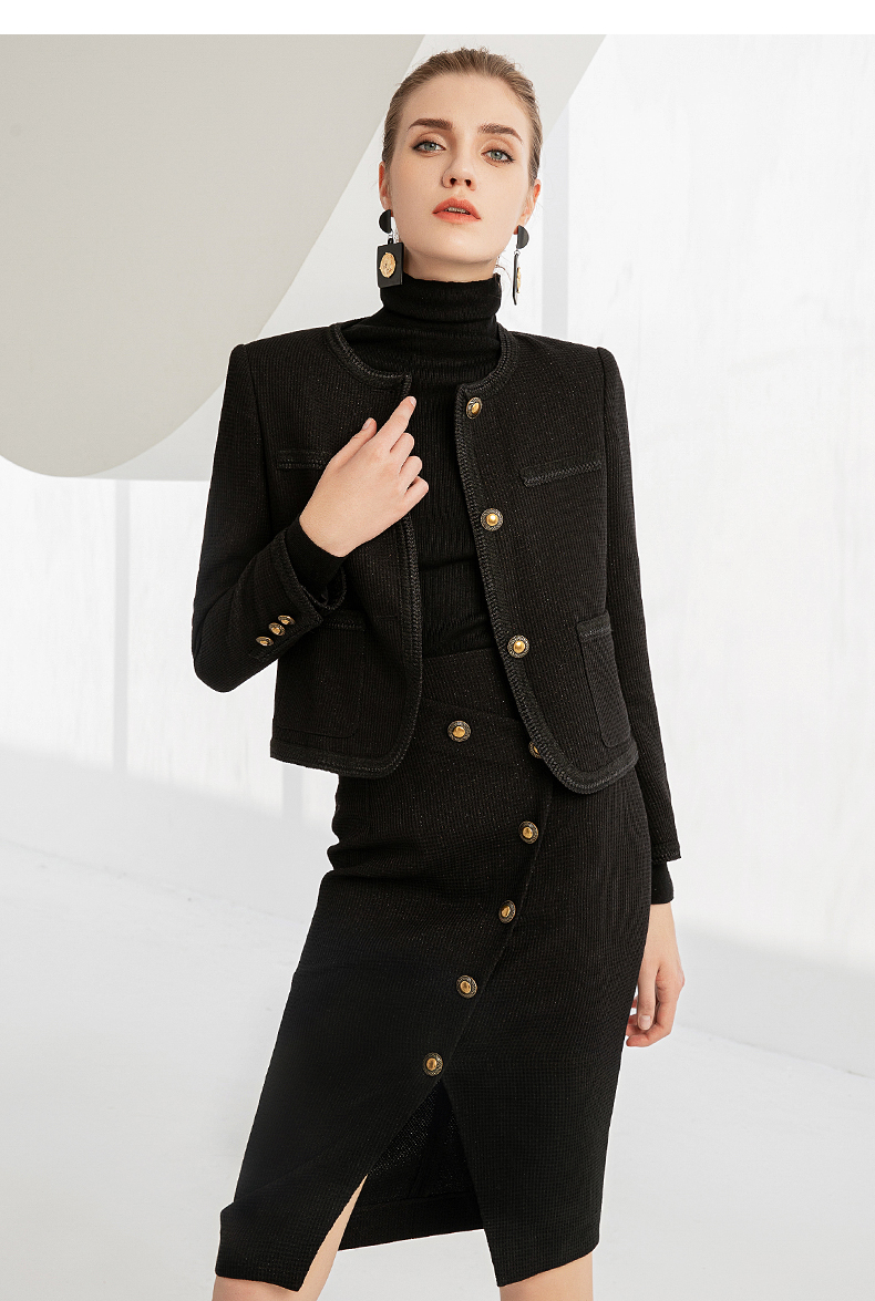 IWY/黑色气质小香风外套修身显瘦短外套女西装224004C1+S1