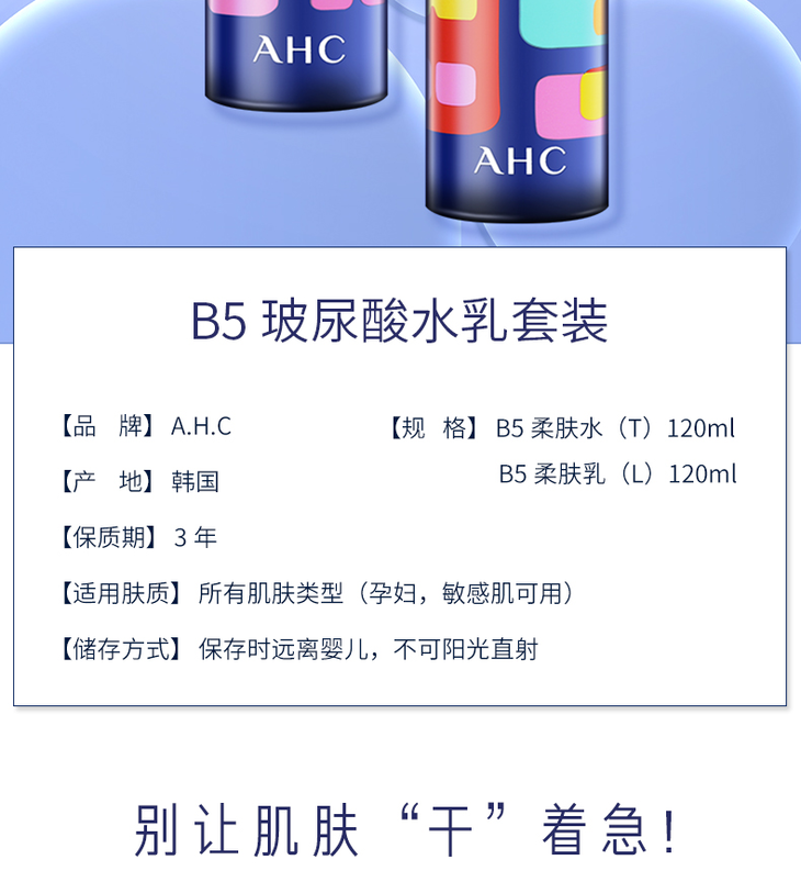 【现货】AHC-B5玻尿酸提亮紧致舒缓肌肤保湿补水锁水修复水乳 可拆分(联名普通随机发)