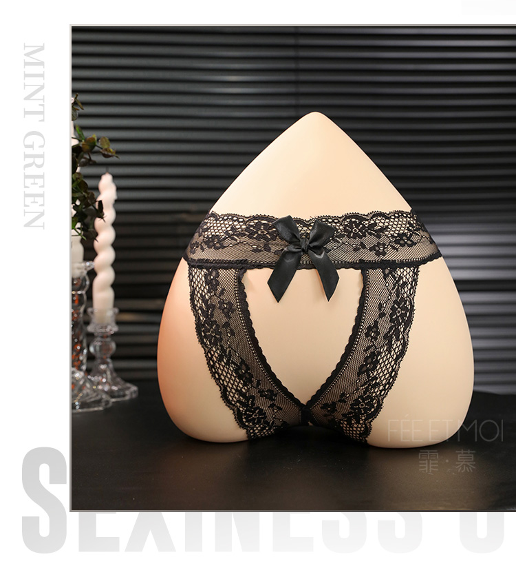 霏慕 蕾丝开裆后绑带露臀内裤7140 女士内裤情趣内衣性感纯欲免脱诱惑 蜜桃诉语