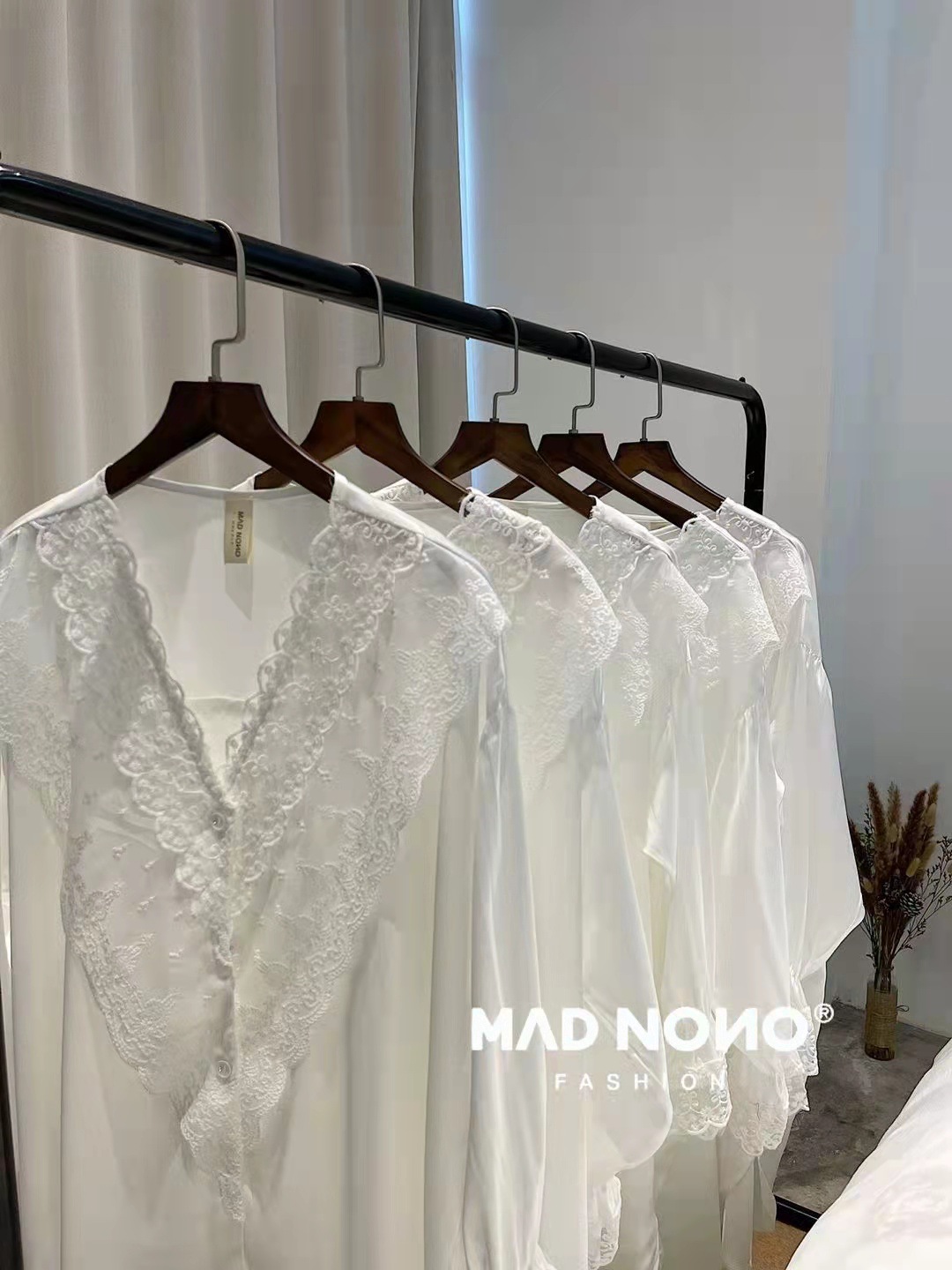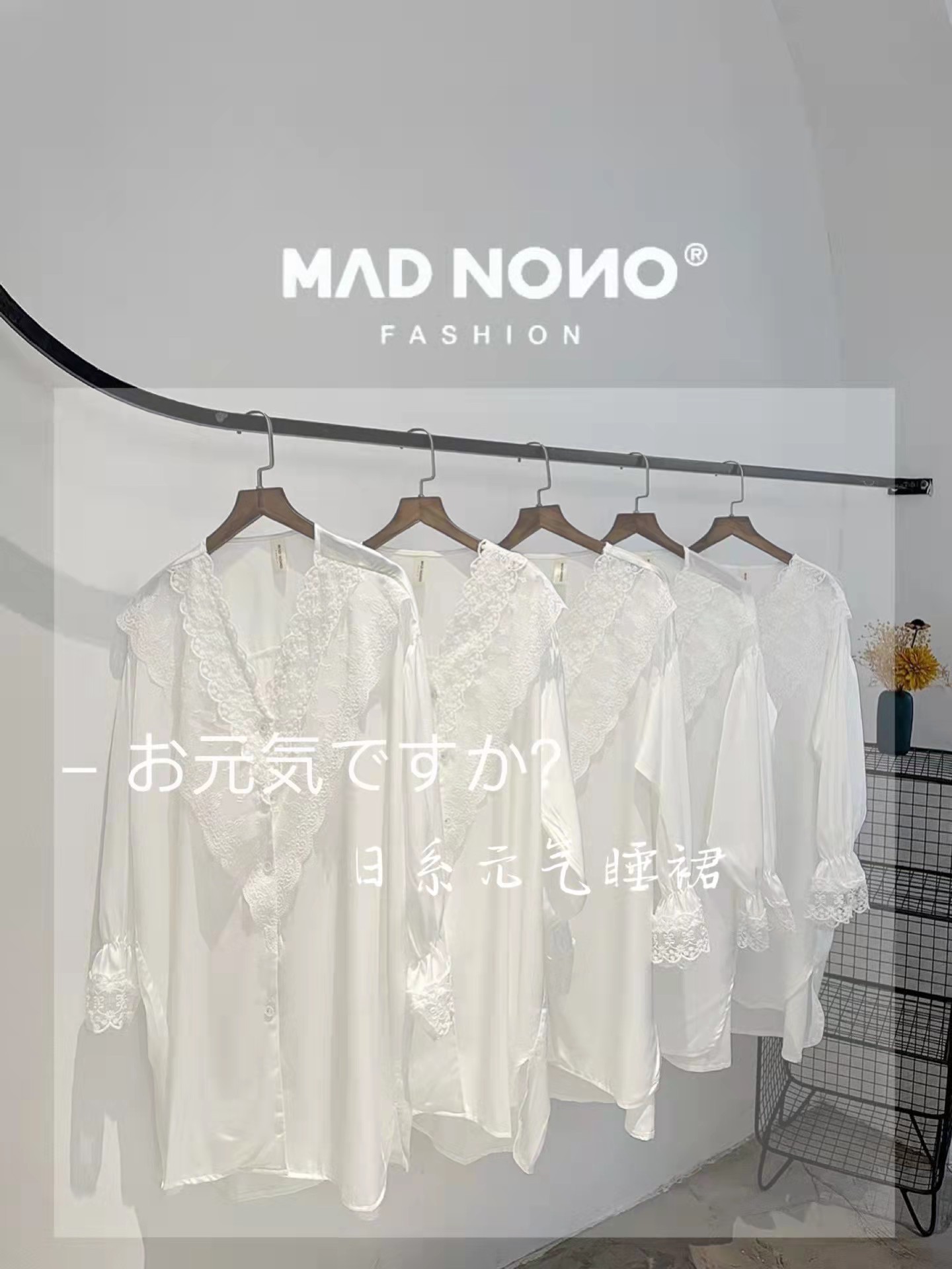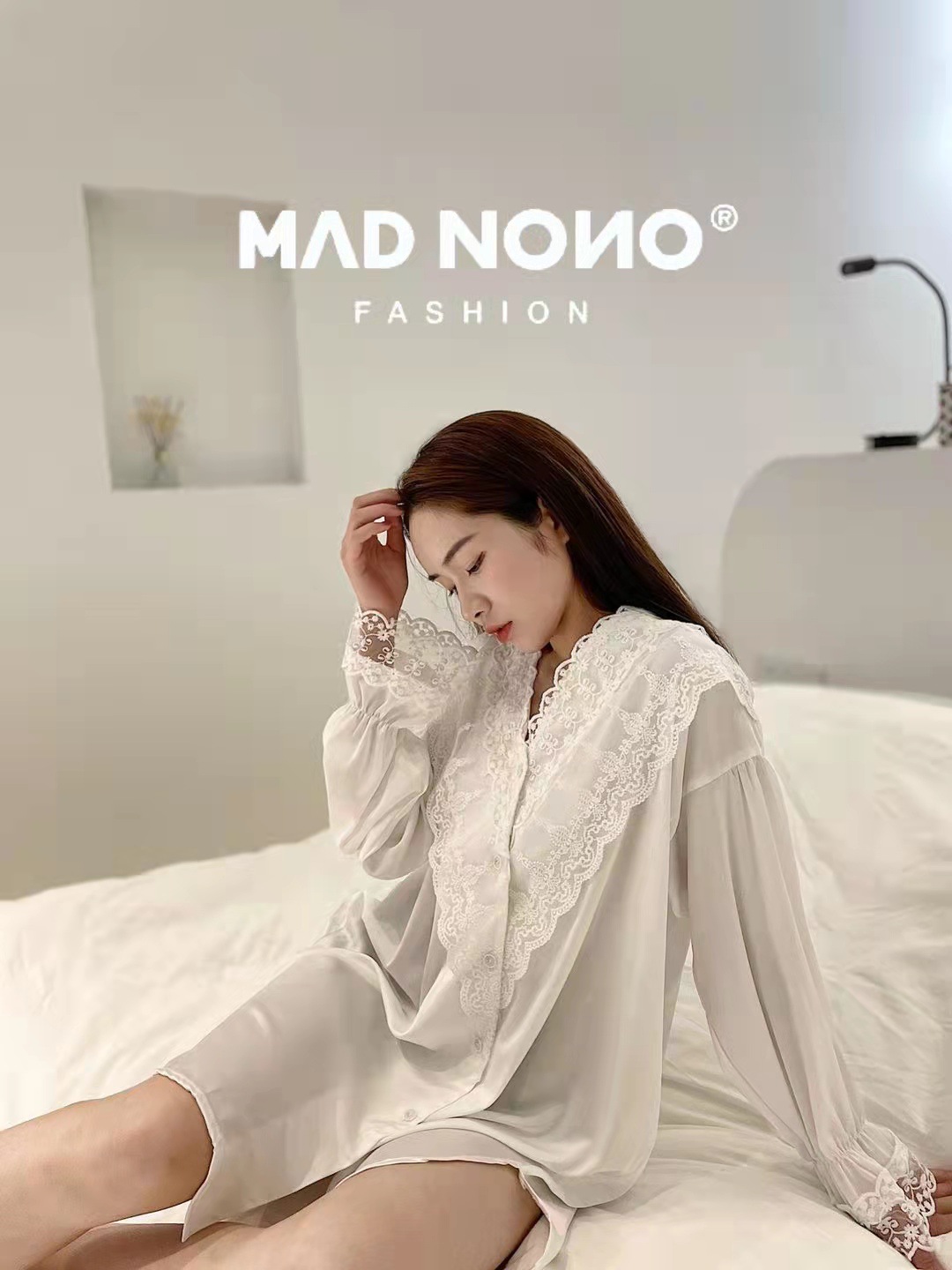 MAD NONO日系元气睡裙2023年夏季新款性感蕾丝薄白色长袖睡衣裙子