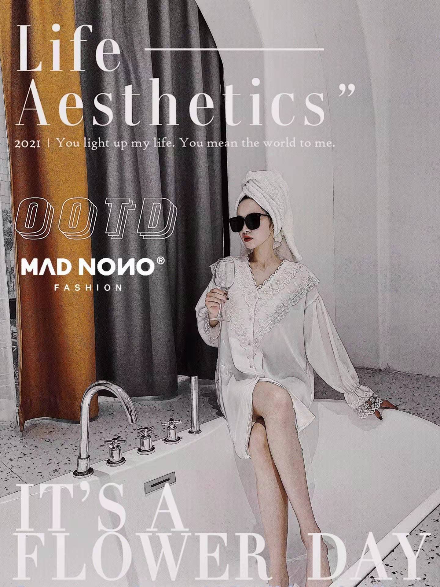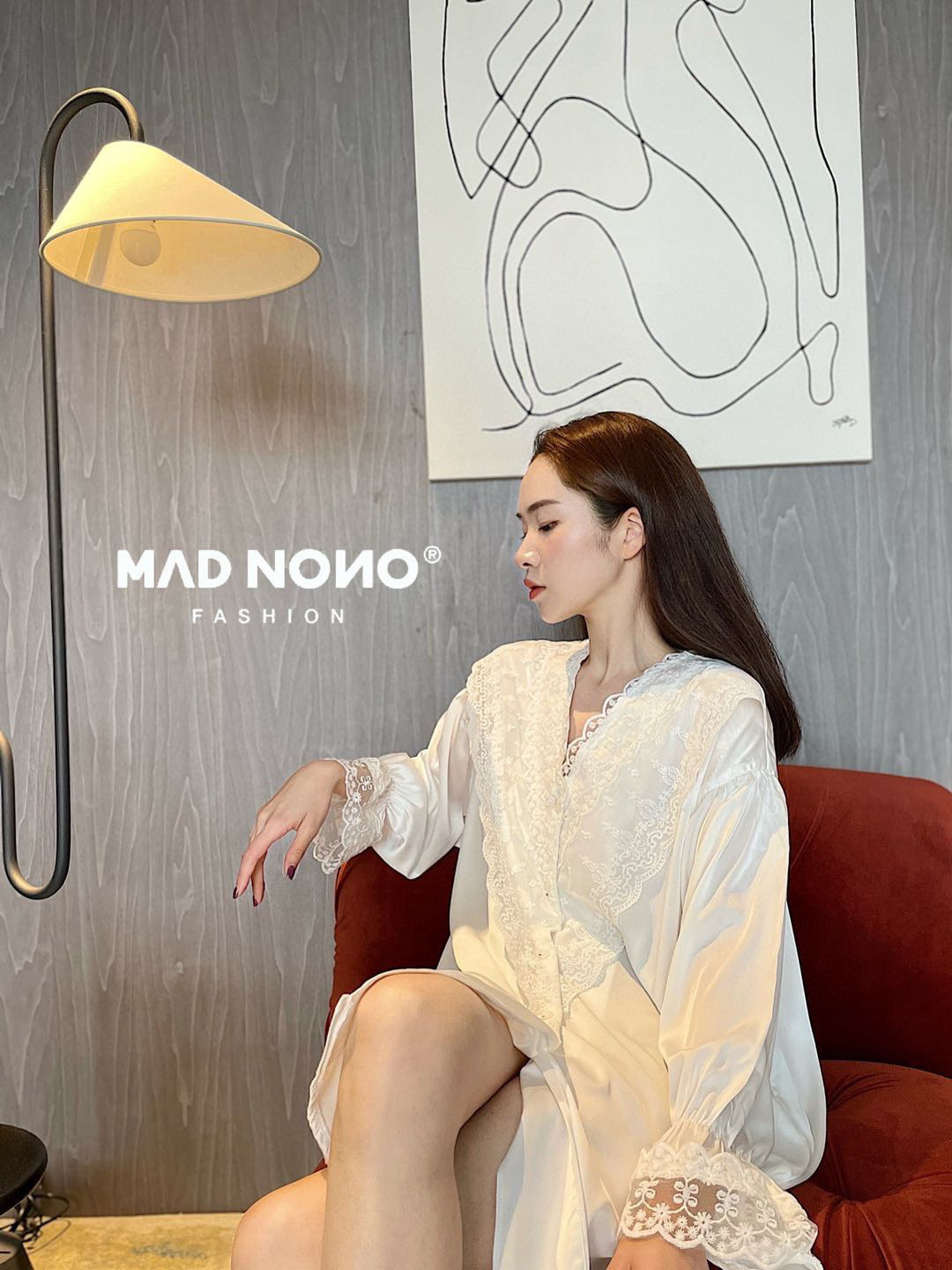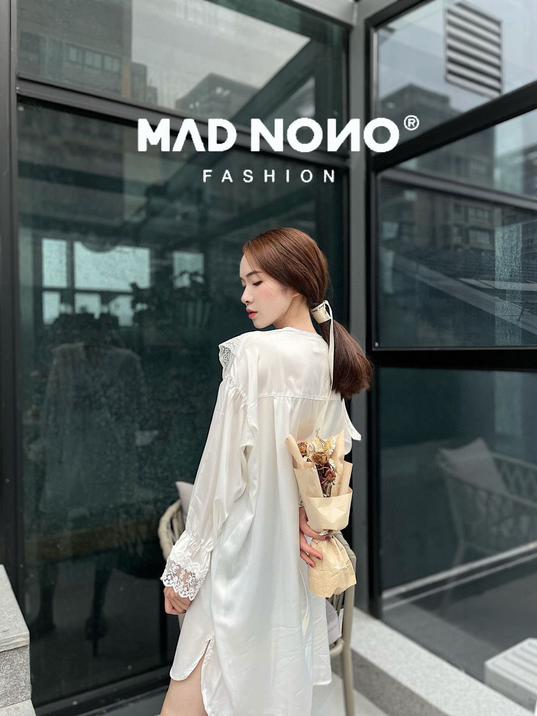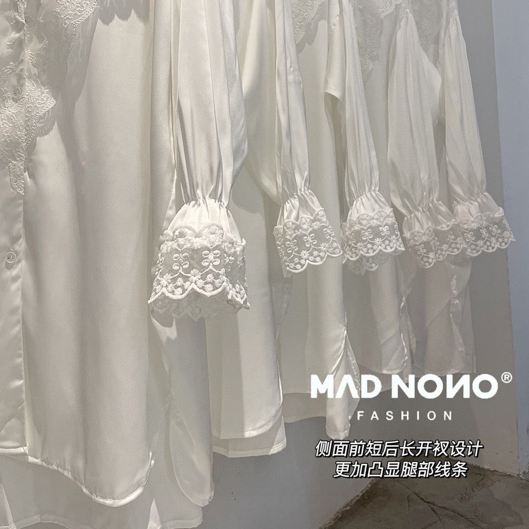 MAD NONO日系元气睡裙2023年夏季新款性感蕾丝薄白色长袖睡衣裙子