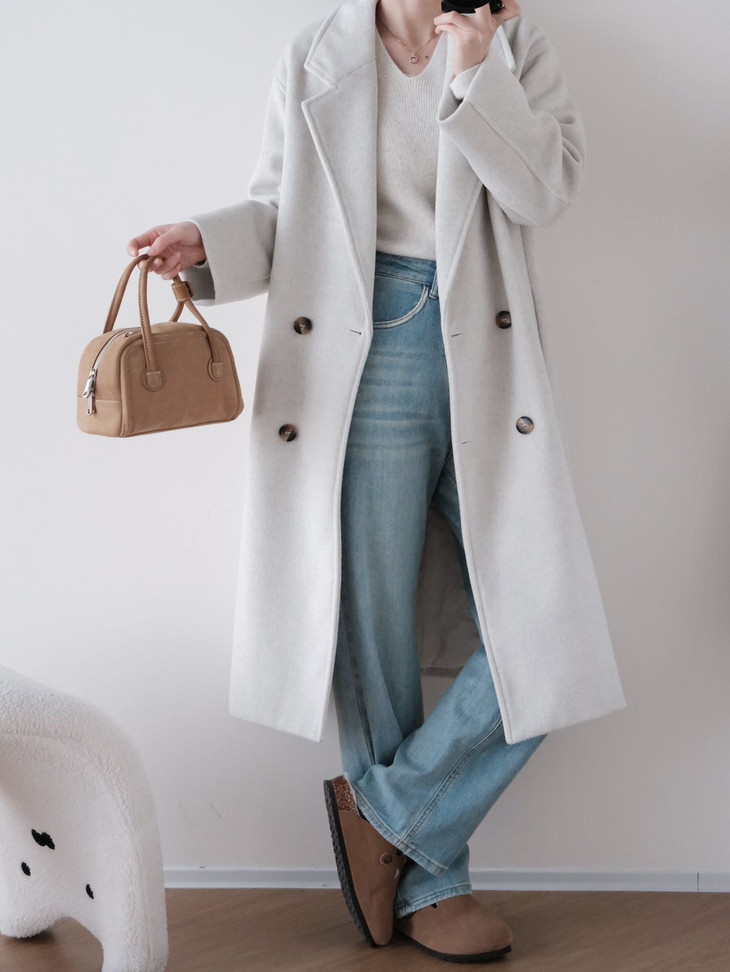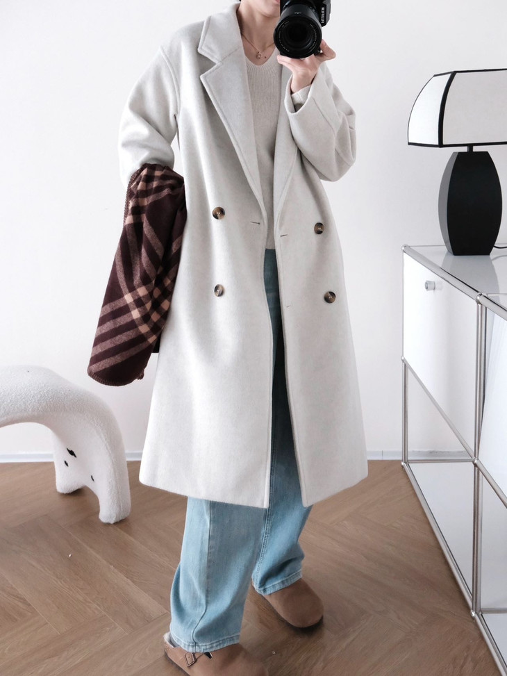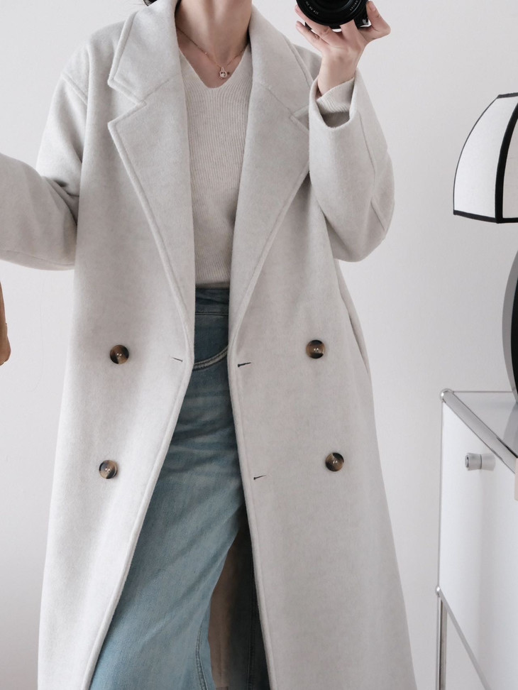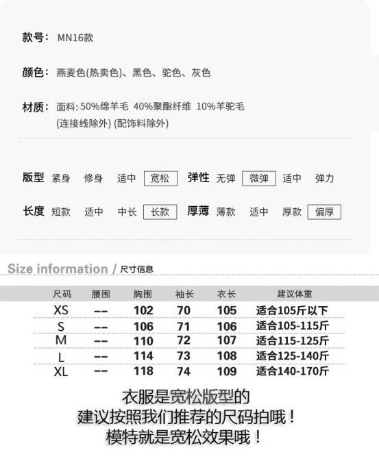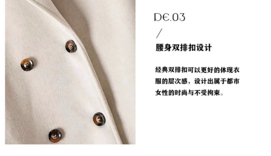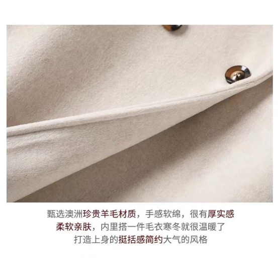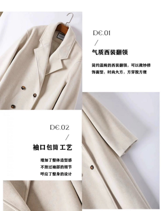 呢子大衣一直是秋冬屹立不倒的单品 长西装版型实穿不挑人 燕麦色很高级 这个版型特别显高! 小个子毫无压力! 面料都是出口客供的 也就情有可原!