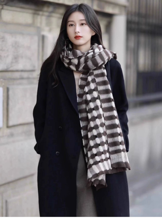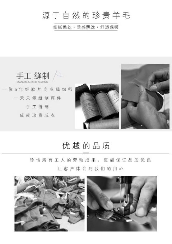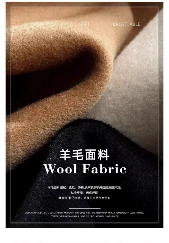 选用50%绵羊毛+40%超柔纤维+10%羊驼毛 双层梭织工艺 同样版型的大衣 用毛量是相当于普通大衣的2倍 锤炼出毛绒细密,底绒丰富 手感柔软的效果!