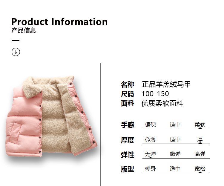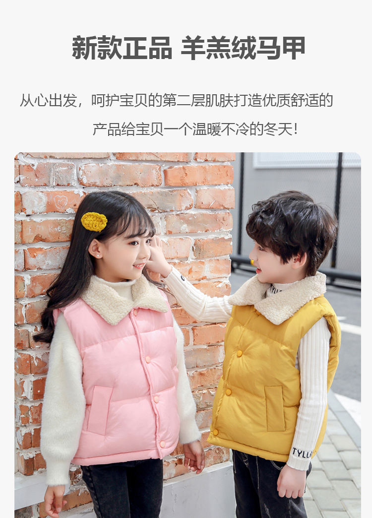 【加绒加厚】儿童加绒加厚马甲羊羔绒韩版背心马甲P1006 100%