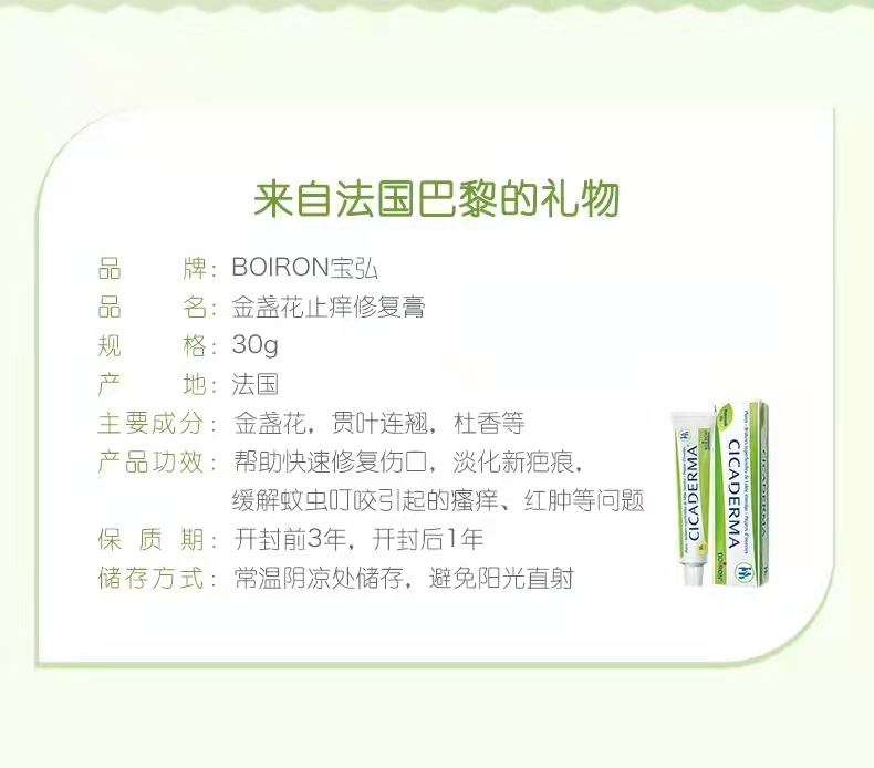 Boiron法国宝弘金盏花婴幼儿蚊虫叮咬止痒膏儿童驱蚊修复膏30g