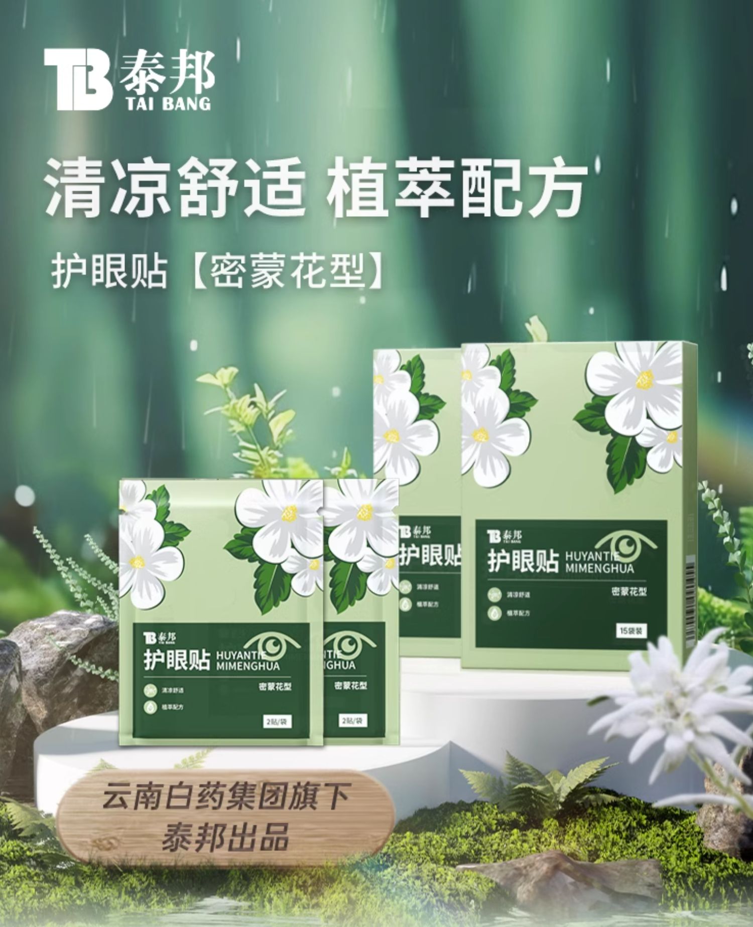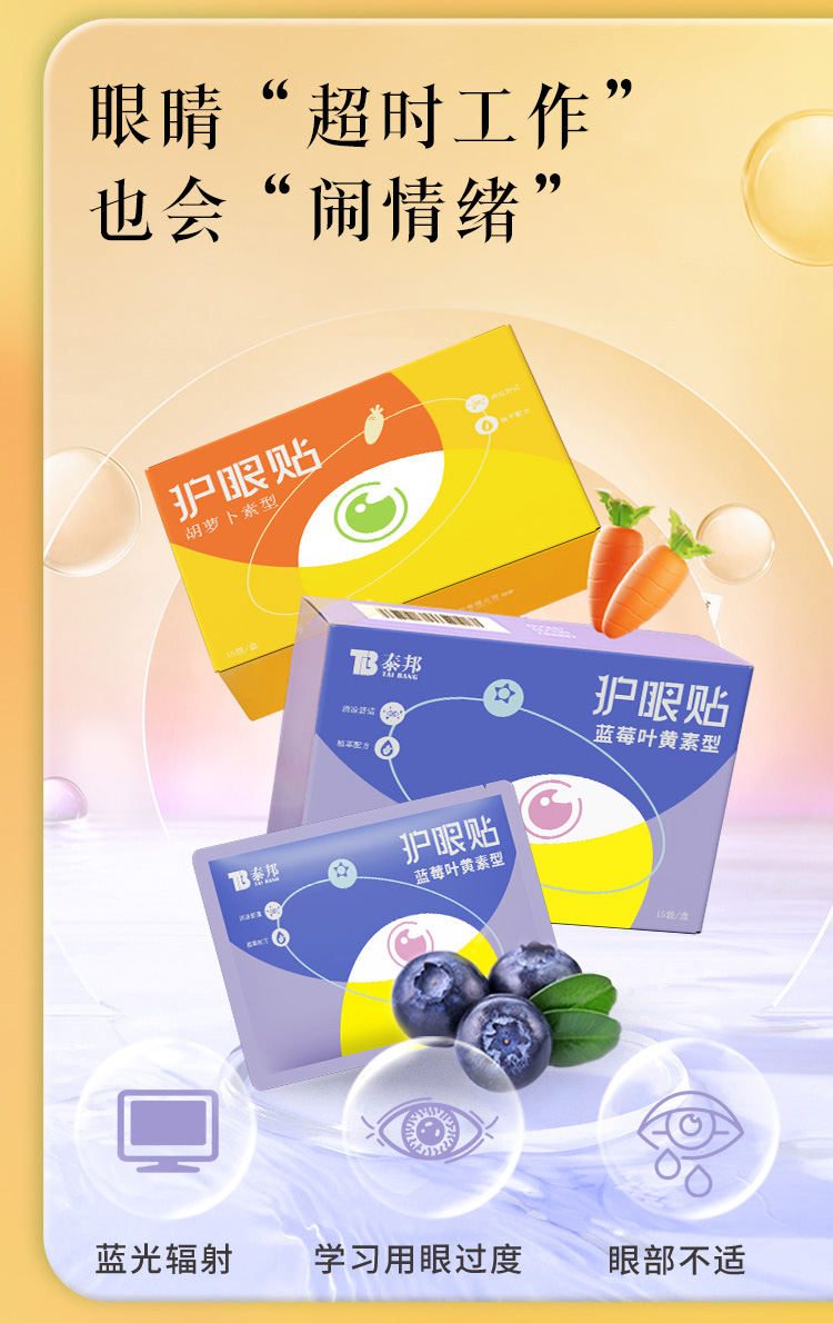 【官方正品】云南白药泰邦护眼贴2贴*15袋/盒胡萝卜素蓝莓叶黄素密蒙花缓解眼疲劳冰敷贴