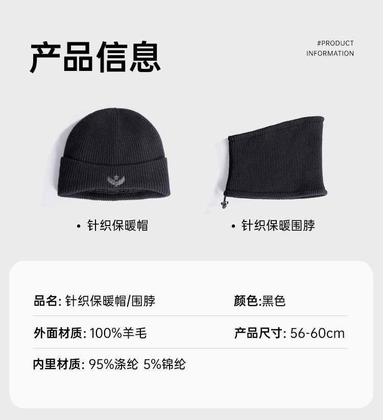 【实付满399送保温杯】【针织保暖帽/围脖】高弹保暖羊毛帽子 一件多用围脖面罩