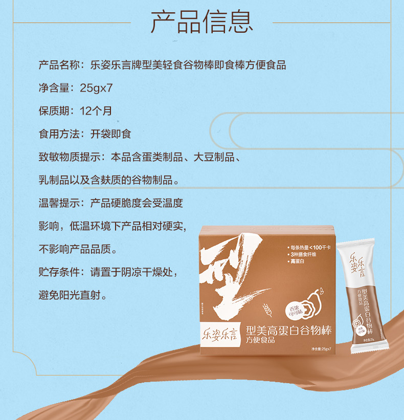 【预售 急单慎拍】无限极乐姿乐言牌型美高蛋白谷物棒方便食品(香浓可可味)25g*7 原价95元