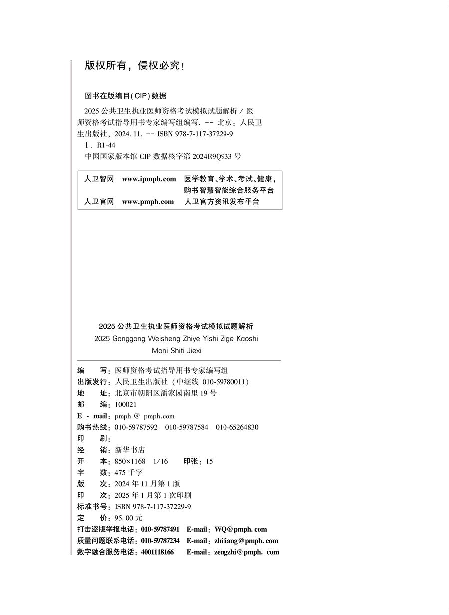 书名:2025公共卫生执业医师资格考试模拟试题解析