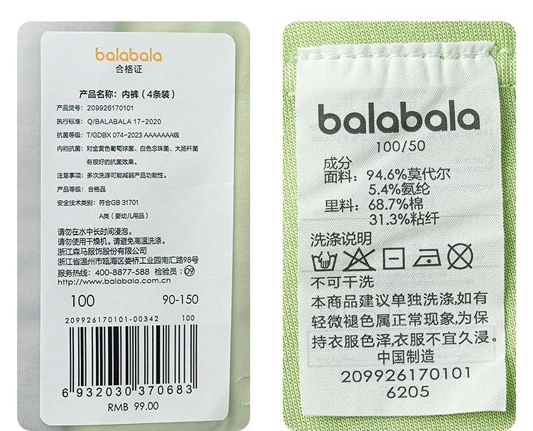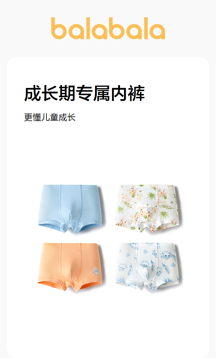 【balaOne】巴拉巴拉男童内裤平角儿童四角短裤不夹PP抗菌四条装