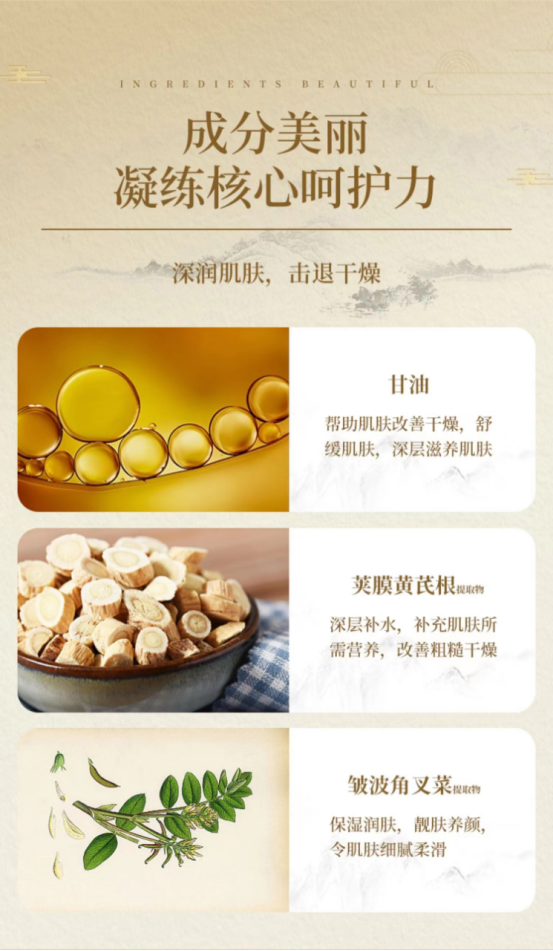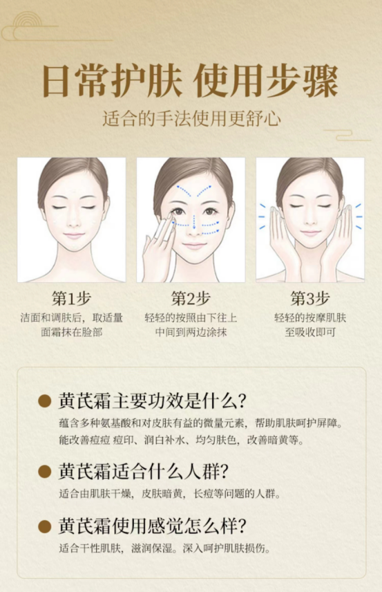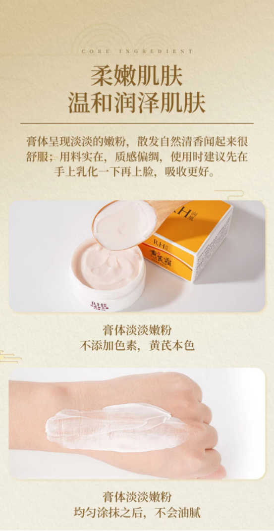 预防和消除雀斑、杀菌以及抗衰老、延缓皮肤衰老、改善皮肤的气血功能黄芪里面有多种氨基酸,保湿修护效果很好,有一定的调节水油的效果植物精粹,让你的肌肤恢复活力,干瘪瘪的脸蛋瞬间嘭弹有光泽,肉粉色水润乳的冰淇淋质地很软糯,很滋润,很保湿