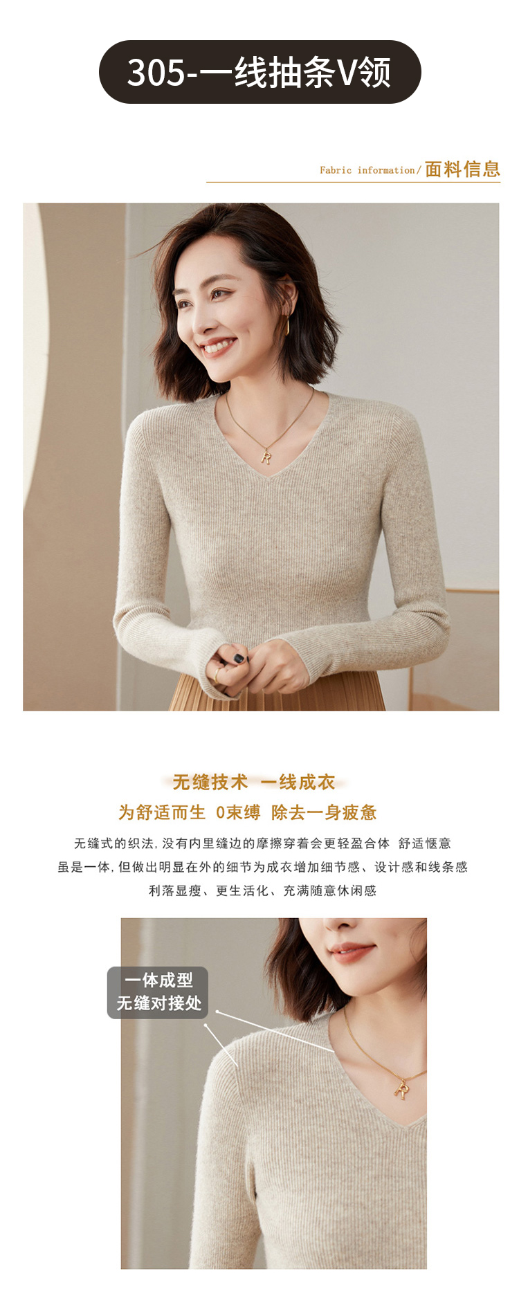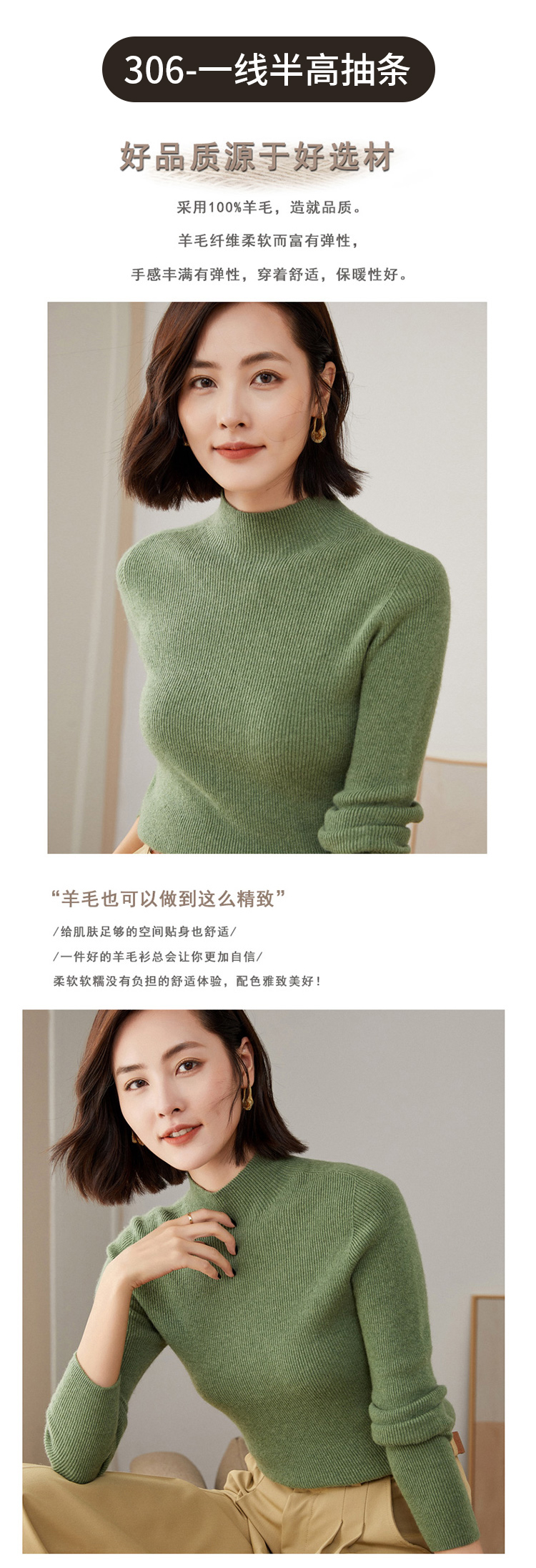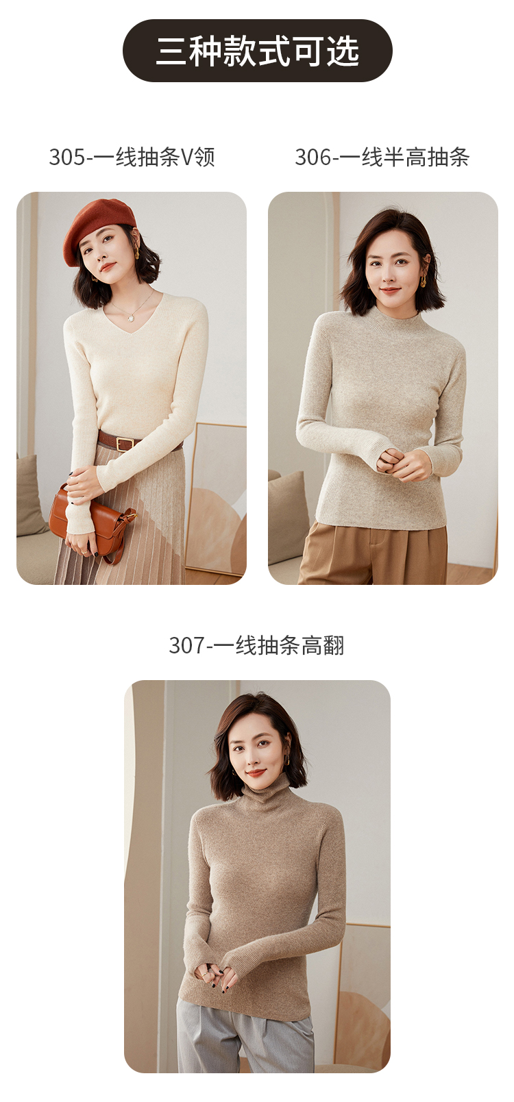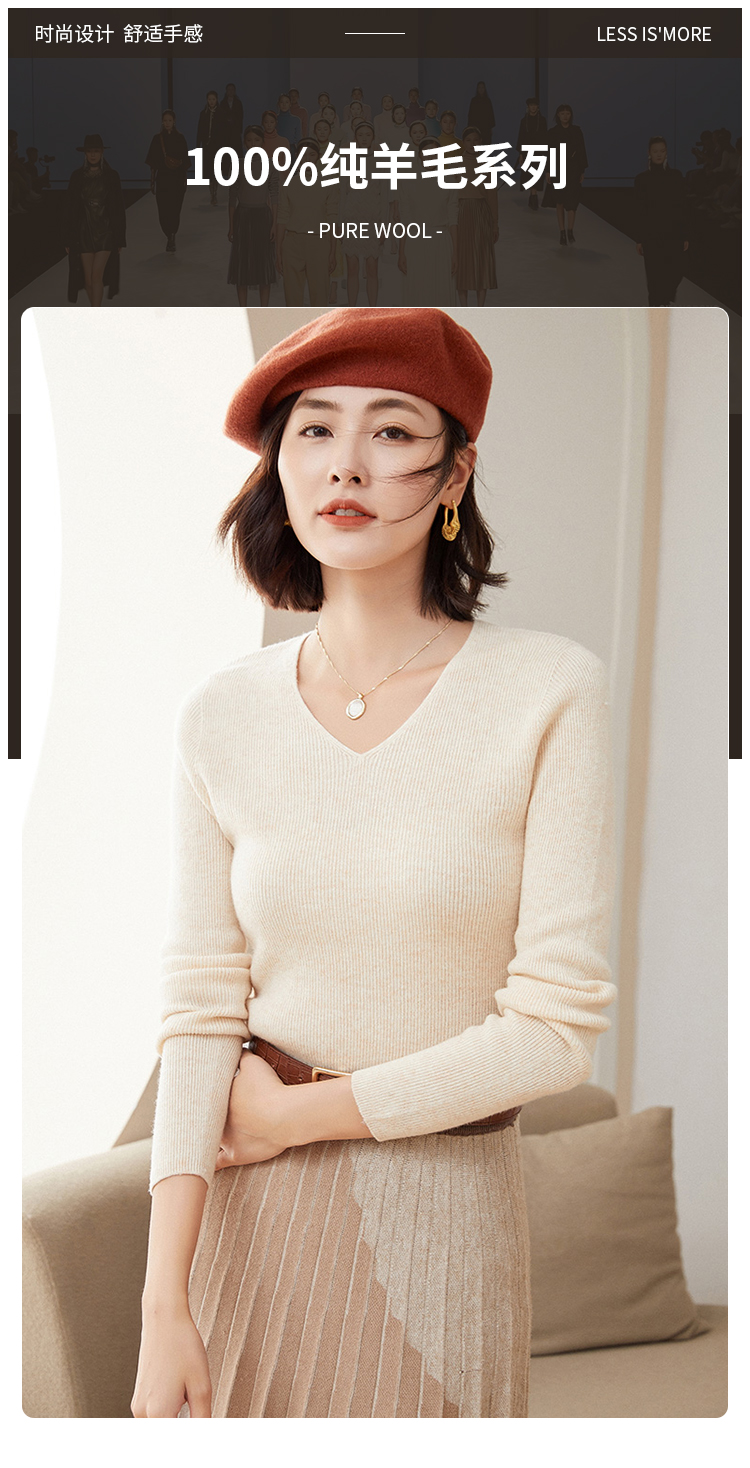 Avann 一线成衣无缝半高抽条/抽条V领/抽条高翻领100%羊毛衫