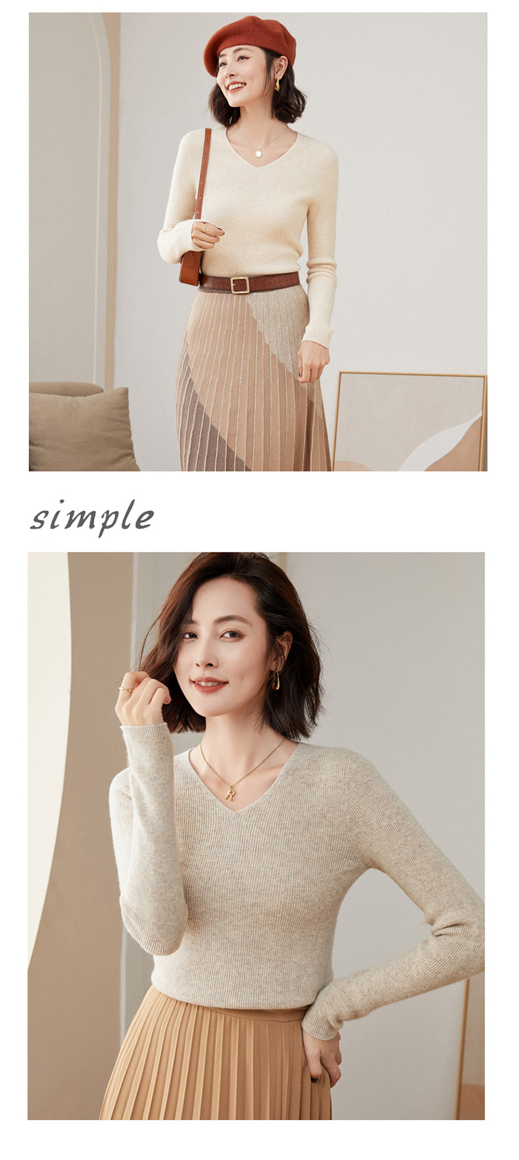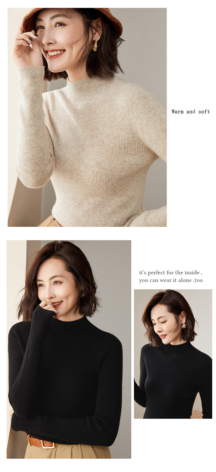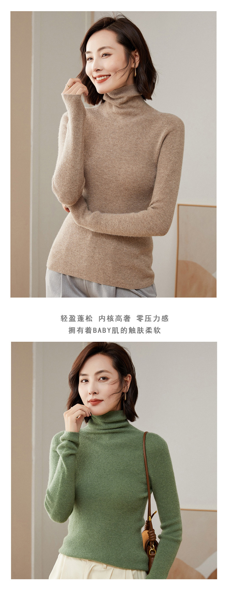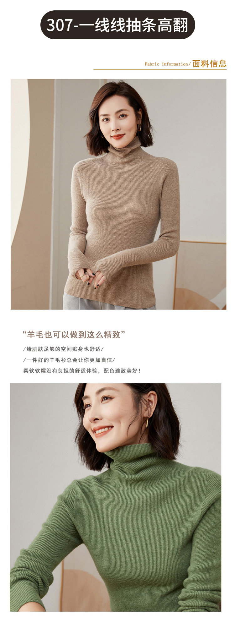 Avann 一线成衣无缝半高抽条/抽条V领/抽条高翻领100%羊毛衫