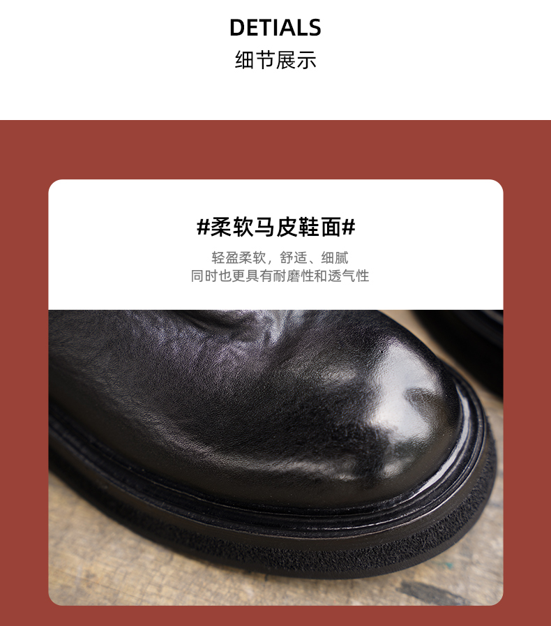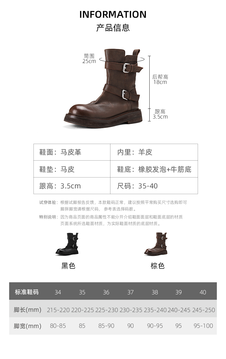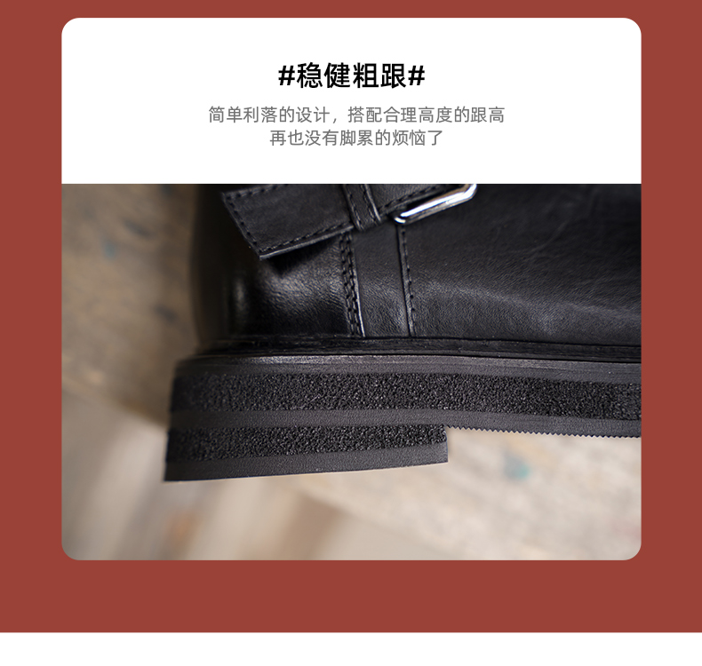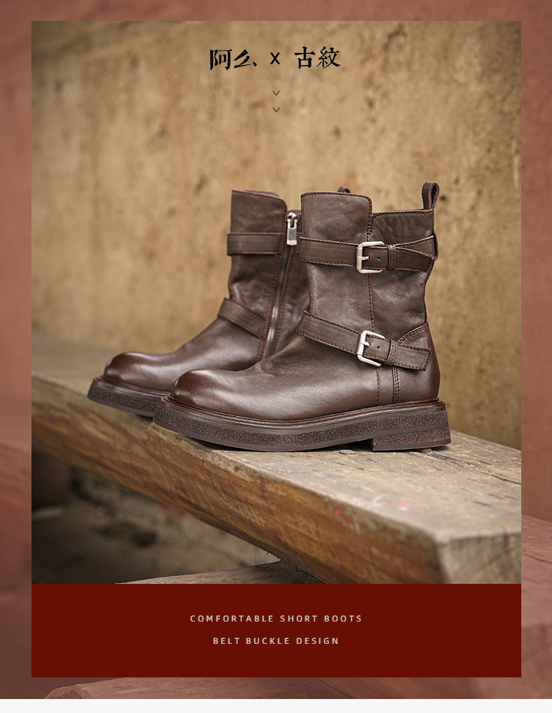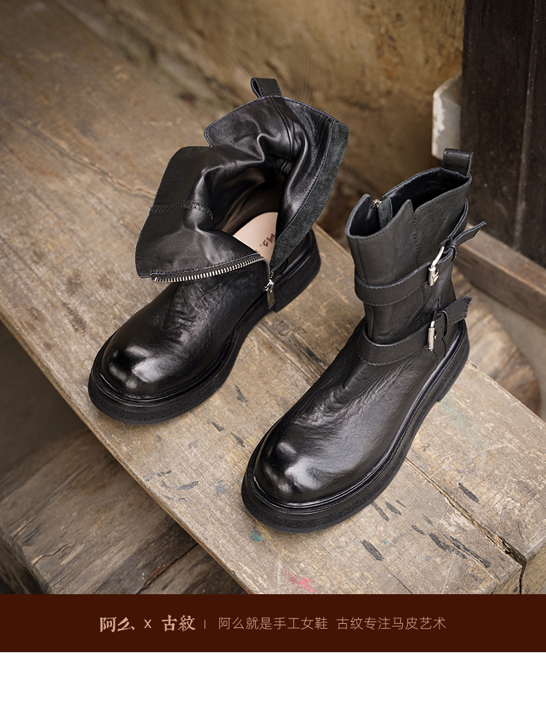 【阿么古纹马皮鞋】水洗复古皮带扣单靴2025新款短筒机车靴女3.5CM