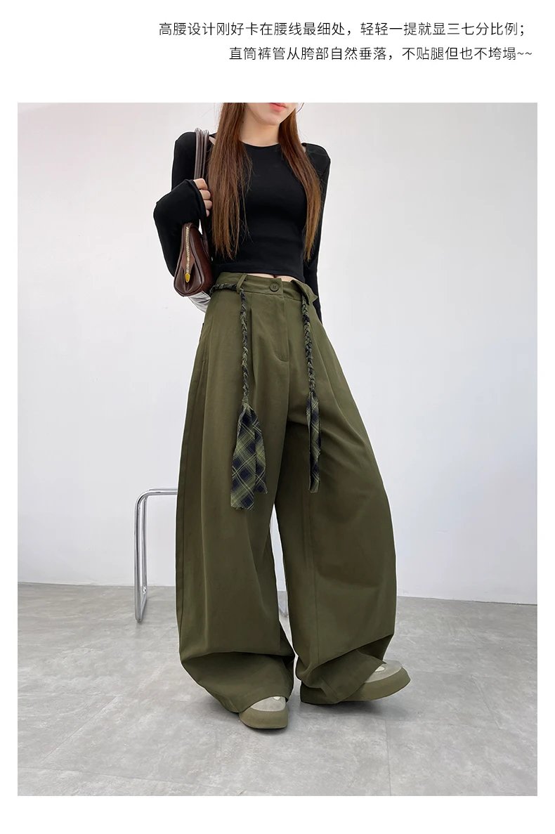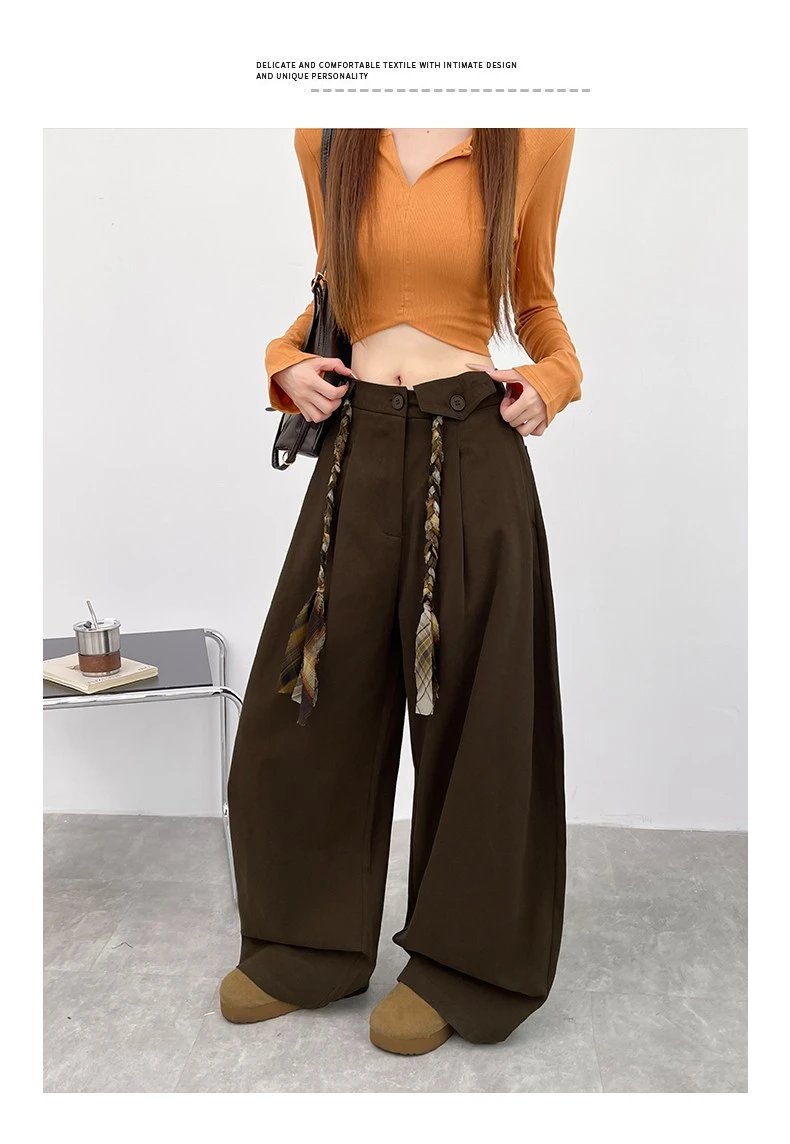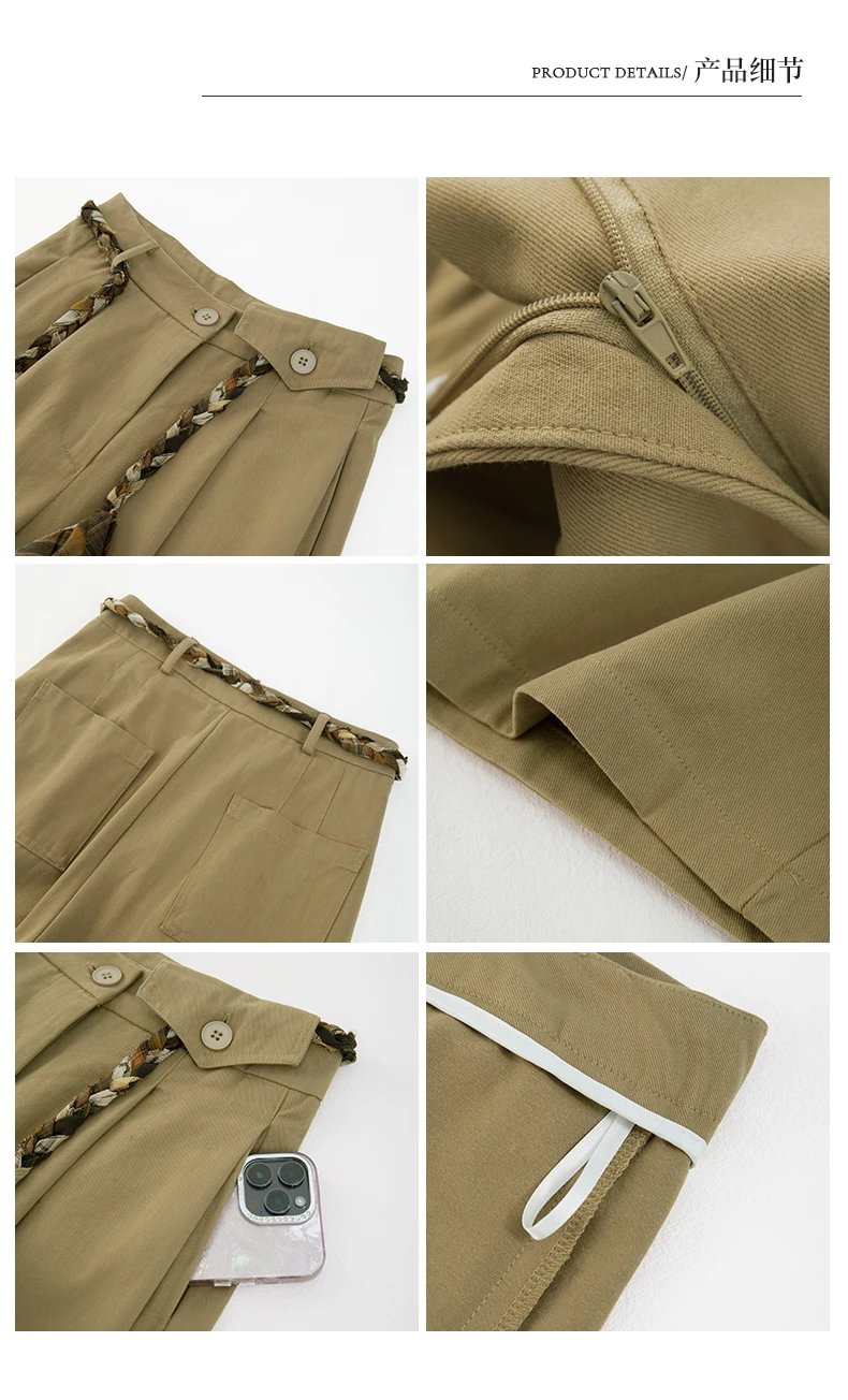 定制格纹编织绳腰头,毛边流苏设计,复古氛围感直接拉满,区别于普通阔腿裤,细节感满满,轻松穿出高级感
