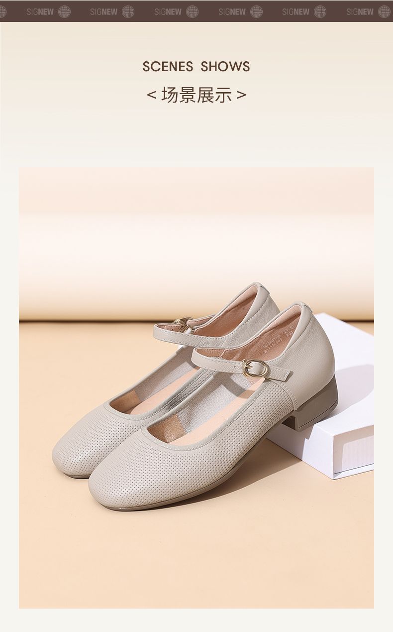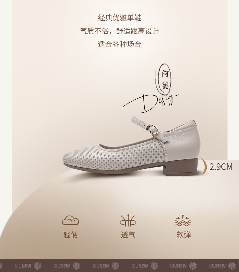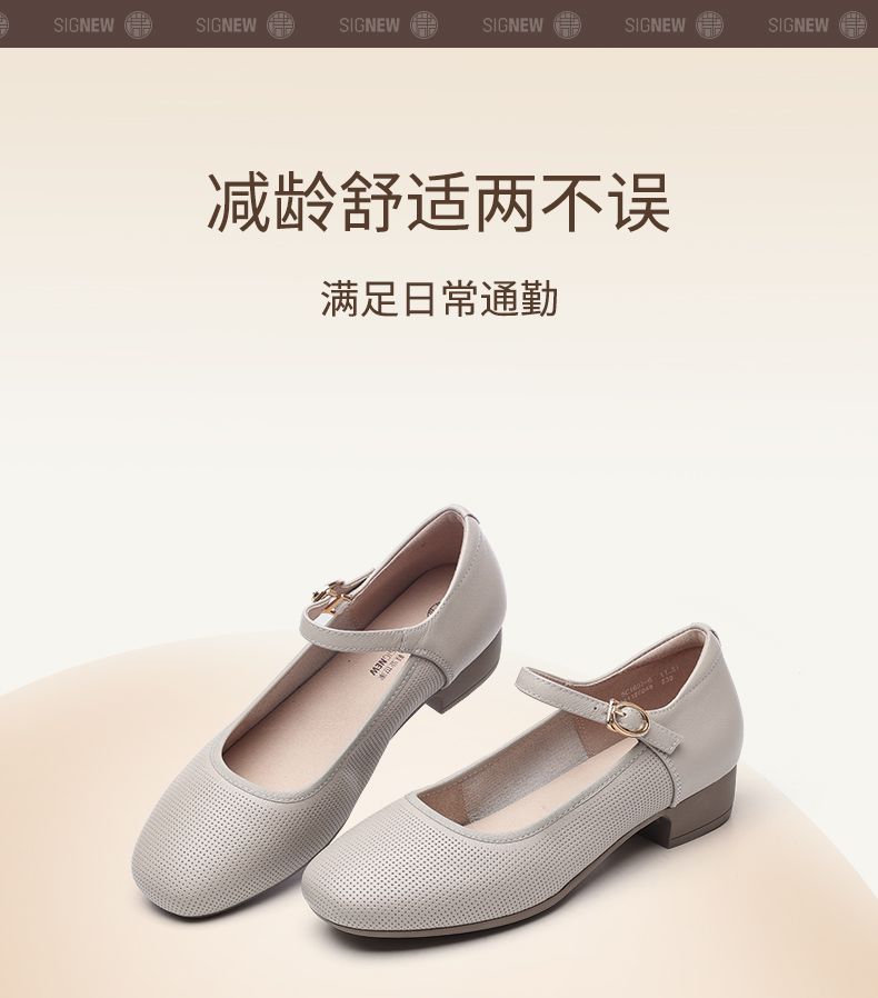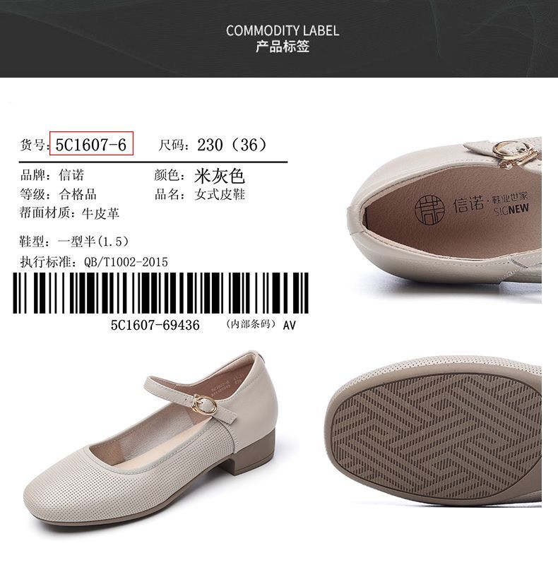 信诺新款真皮舒适女鞋轻便洋气玛丽珍鞋休闲百搭妈妈皮鞋超软单鞋5C1607-6