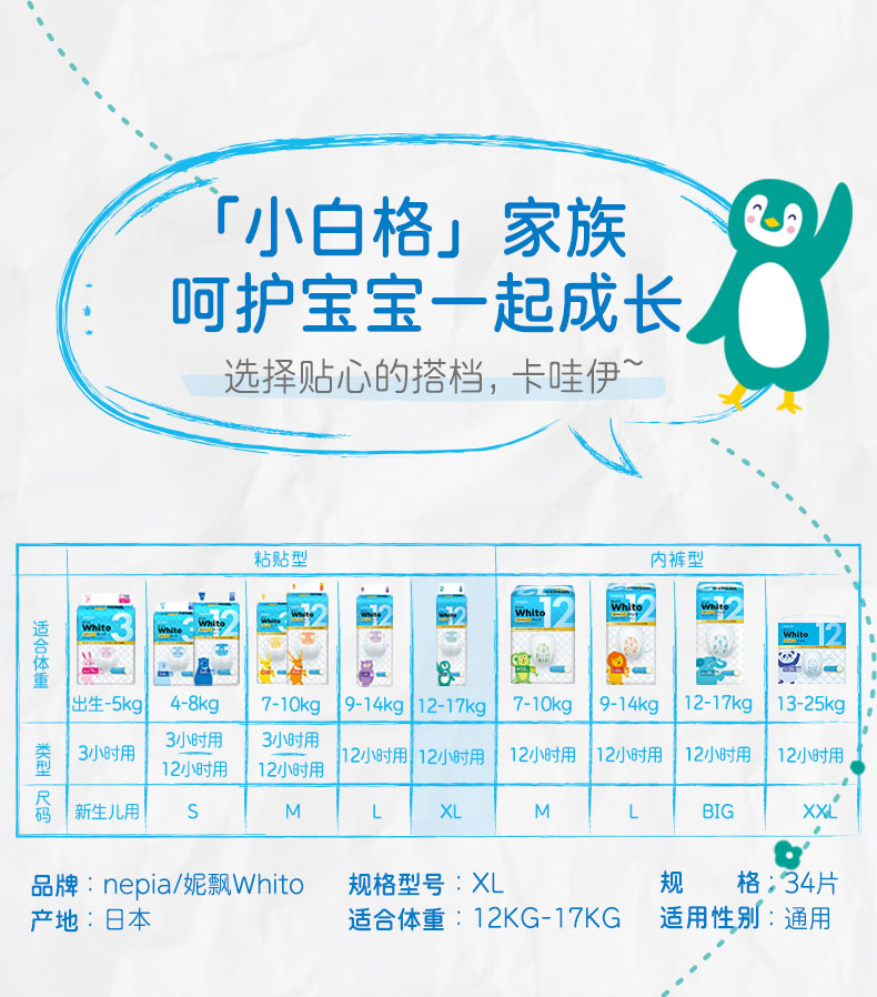 4包【一般贸易】日本妮飘WHITO 12小时纸尿裤