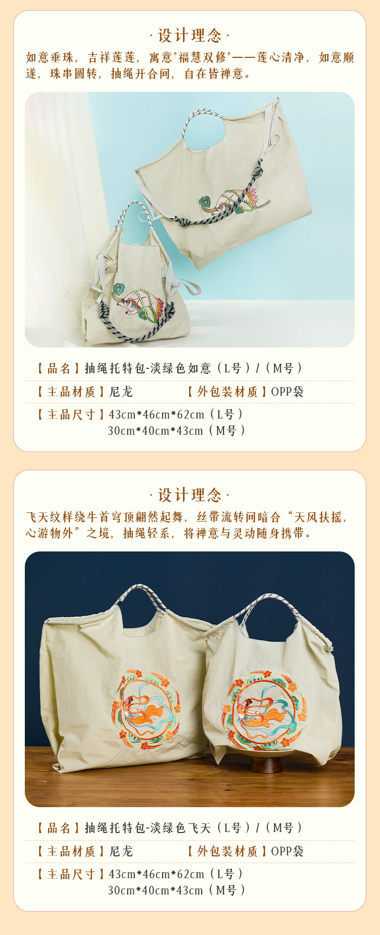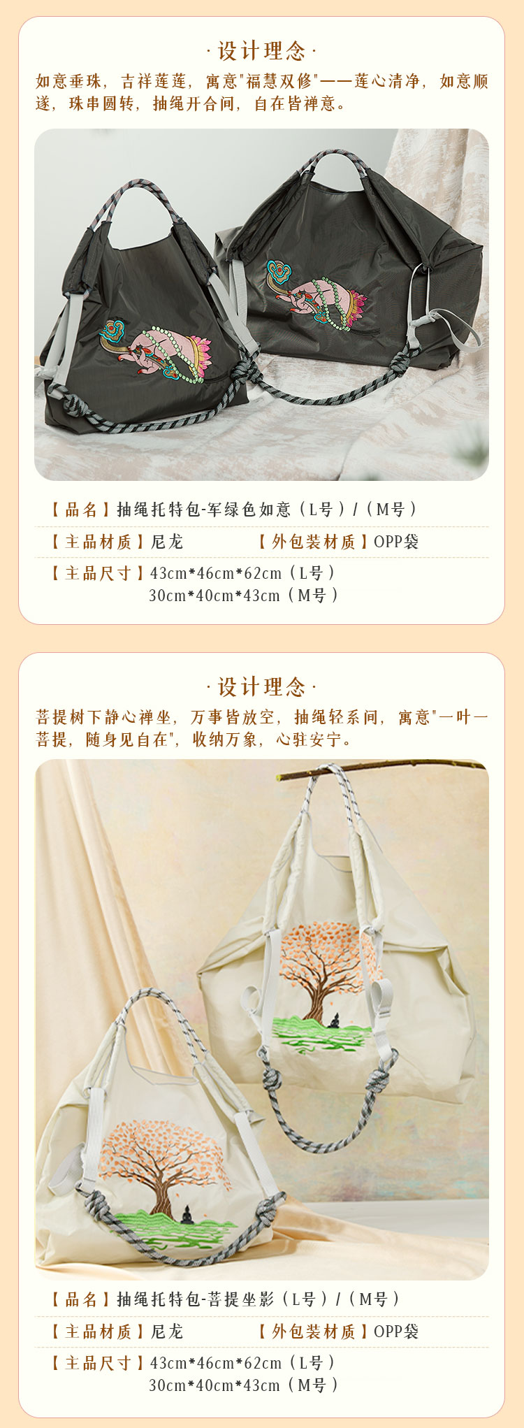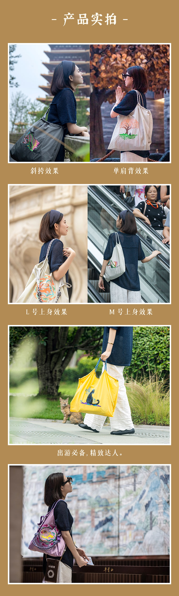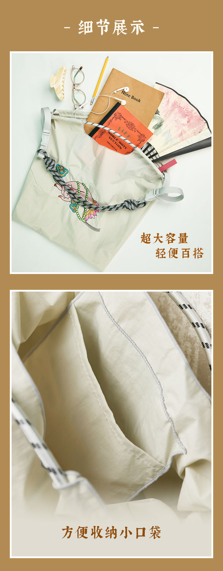 南京牛首山明星同款刺绣尼龙包购物袋单肩包大容量