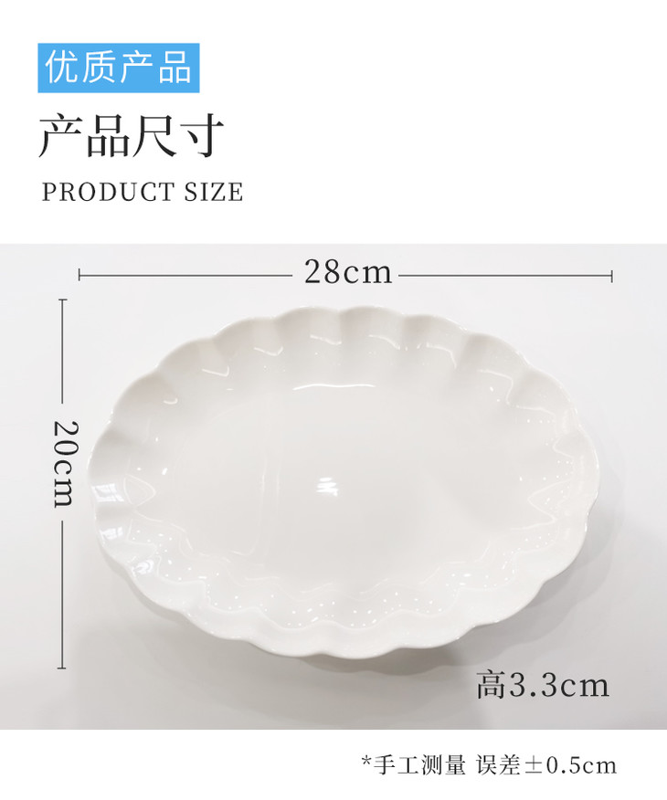 美善品料理机TM5TM6小美专用椭圆形陶瓷骨瓷蒸鱼盘碟子蓝丽隆