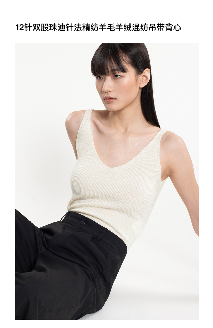2022新款精纺羊绒混纺12针双股珠迪针法吊带背心