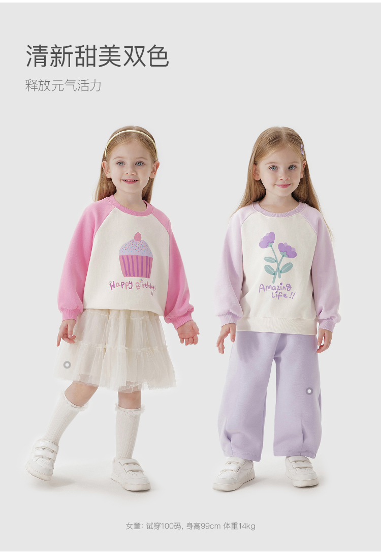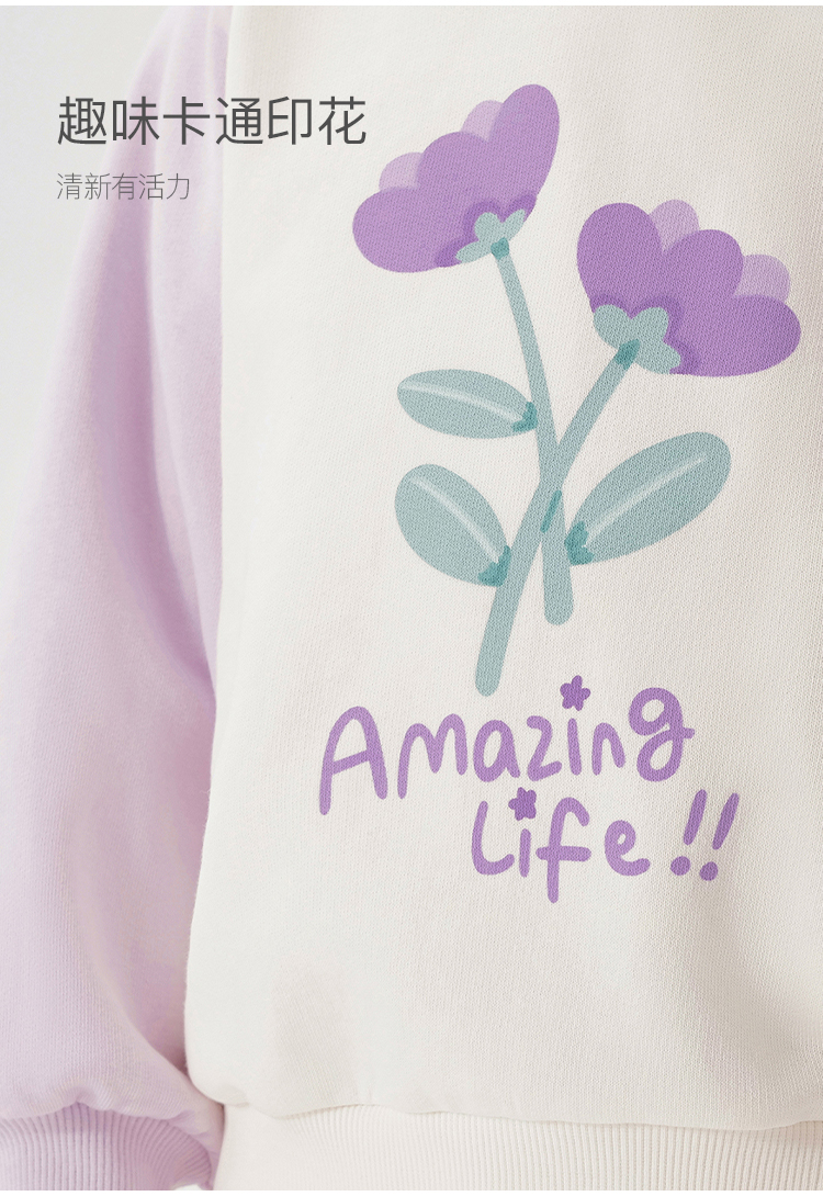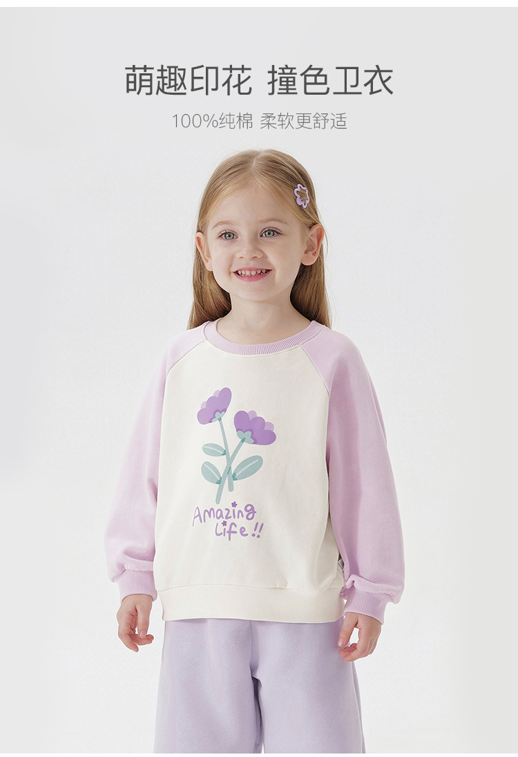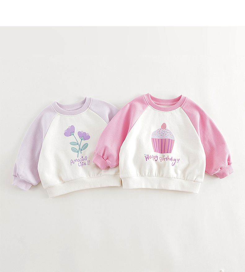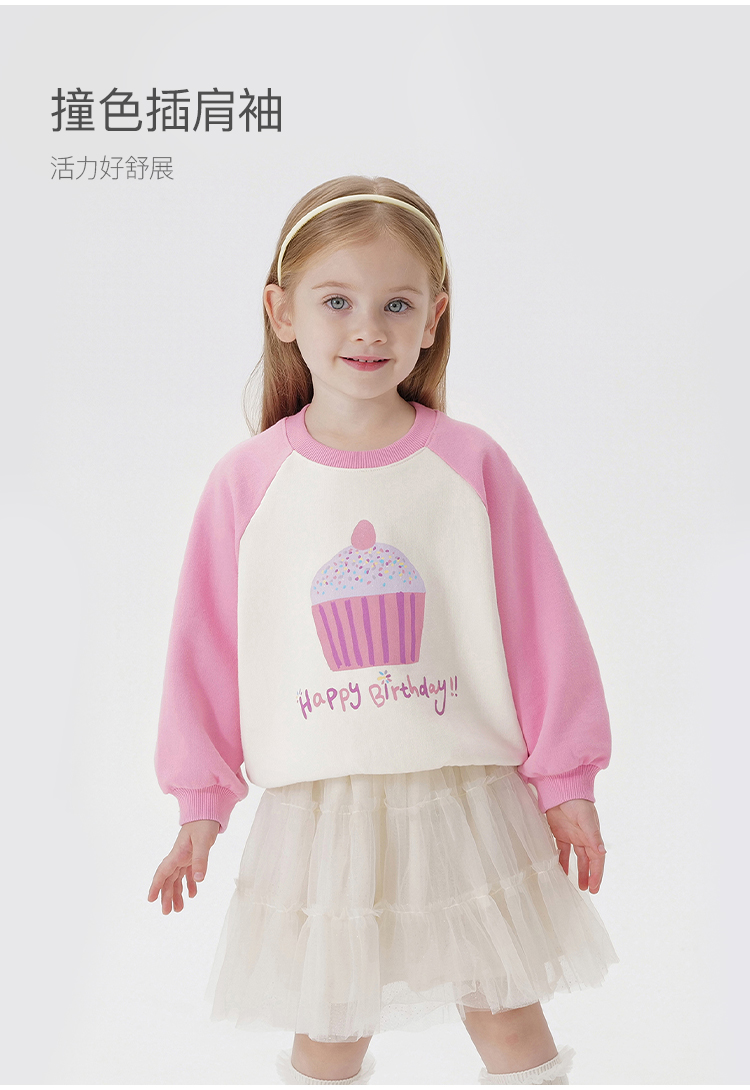 马克珍妮女童趣味印花插肩袖卫衣宝宝宽松上衣纯棉秋装新款241070